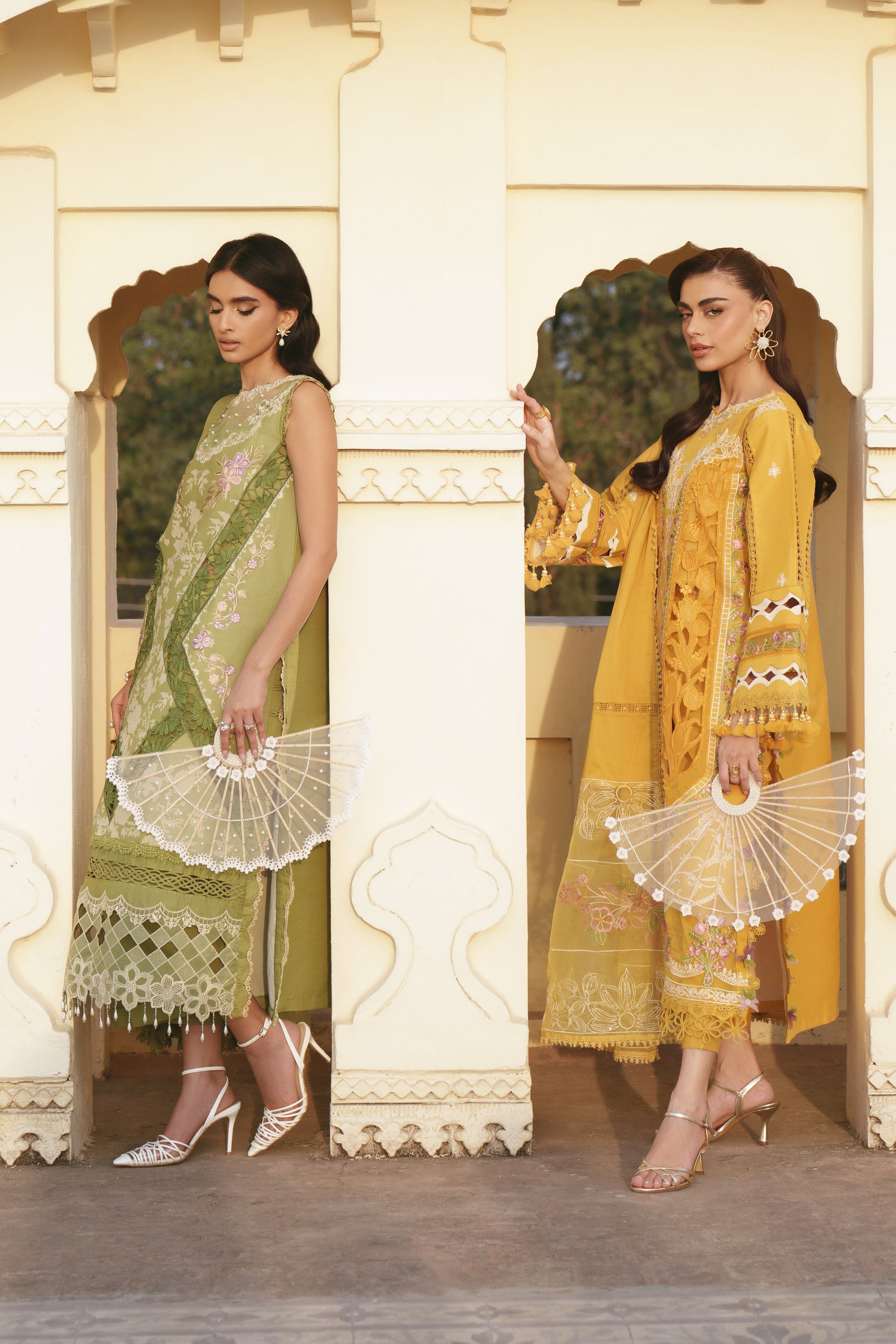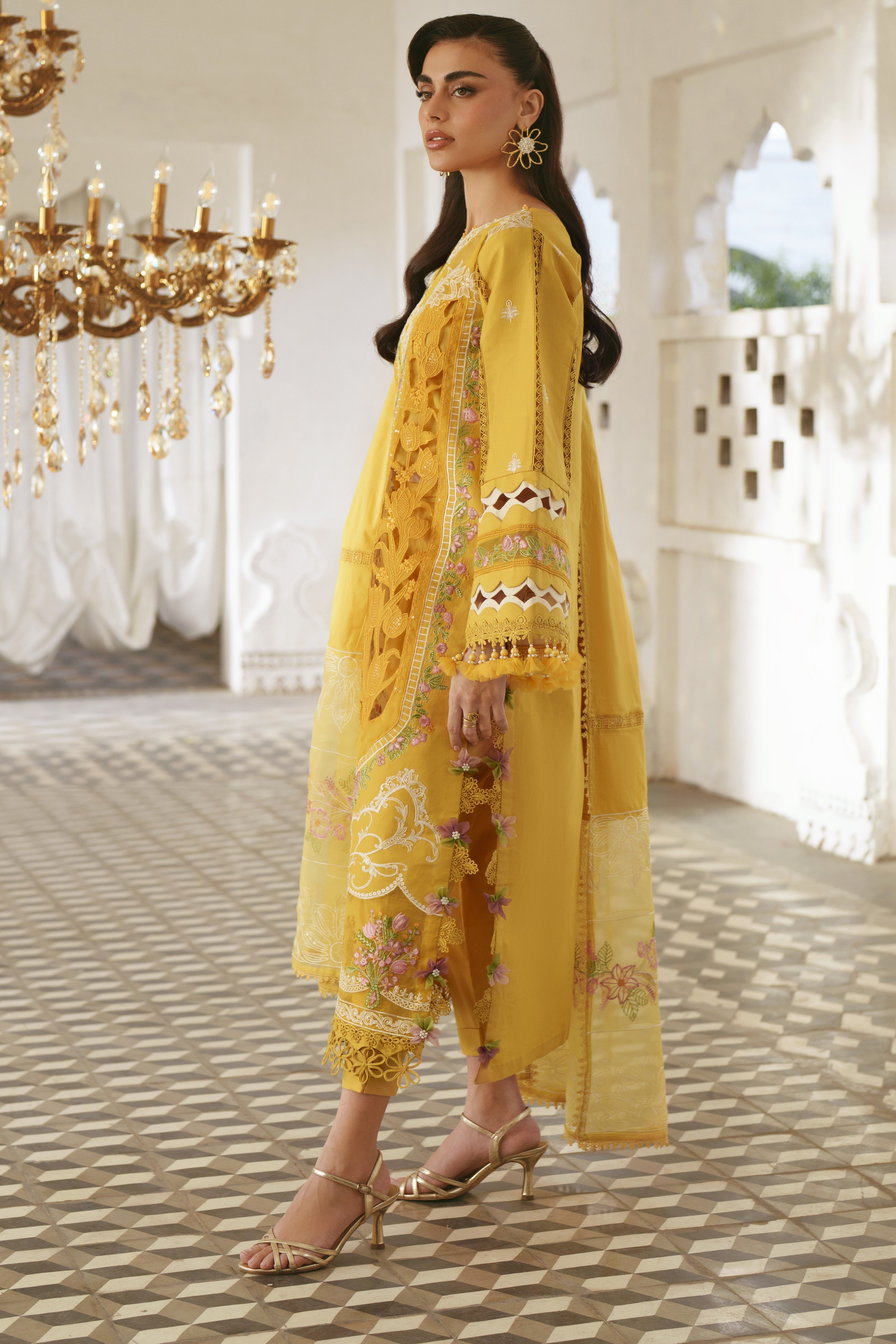 Summary: Embrace summer elegance with this stunning Parishay Pakistani Lawn Suit. The ensemble features a vibrant yellow kameez crafted from breathable lawn fabric, making it a perfect choice for warm weather festivities. The shirt is exquisitely detailed with intricate embroidery on the front, neckline, and daman, complemented by delicate patches and sleeve borders. Paired with an embroidered chiffon dupatta, this unstitched Pakistani dress is a masterpiece of ethnic wear. Its cheerful yellow hue makes it an ideal outfit for Haldi ceremonies, Eid celebrations, or any formal summer event, offering a blend of tradition and contemporary style.