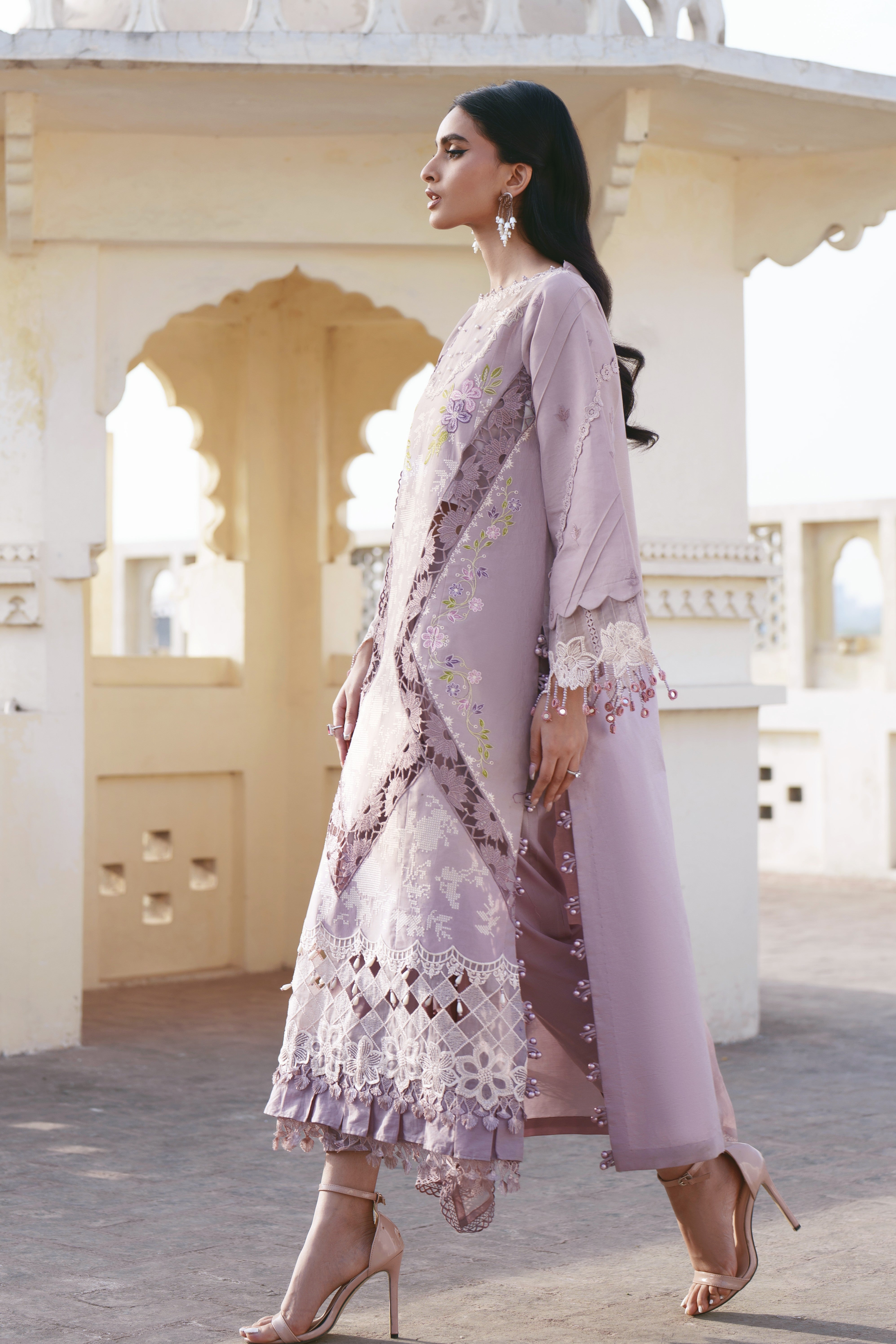 Summary: Embrace ethereal elegance with this stunning lavender Pakistani suit from the Parishay Shangrila Summer Lawn collection. The kameez is crafted from premium lawn, a lightweight fabric perfect for warm weather. This unstitched dress material features exquisite embroidery on the front, sleeves, and a separate neckline piece, offering a look of sophisticated charm. The serene lavender shade makes this ethnic wear perfect for daytime formal events, Eid celebrations, or summer weddings. As a quintessential Pakistani Lawn Dress, it combines traditional craftsmanship with contemporary style, making it an ideal choice for your festive wardrobe.