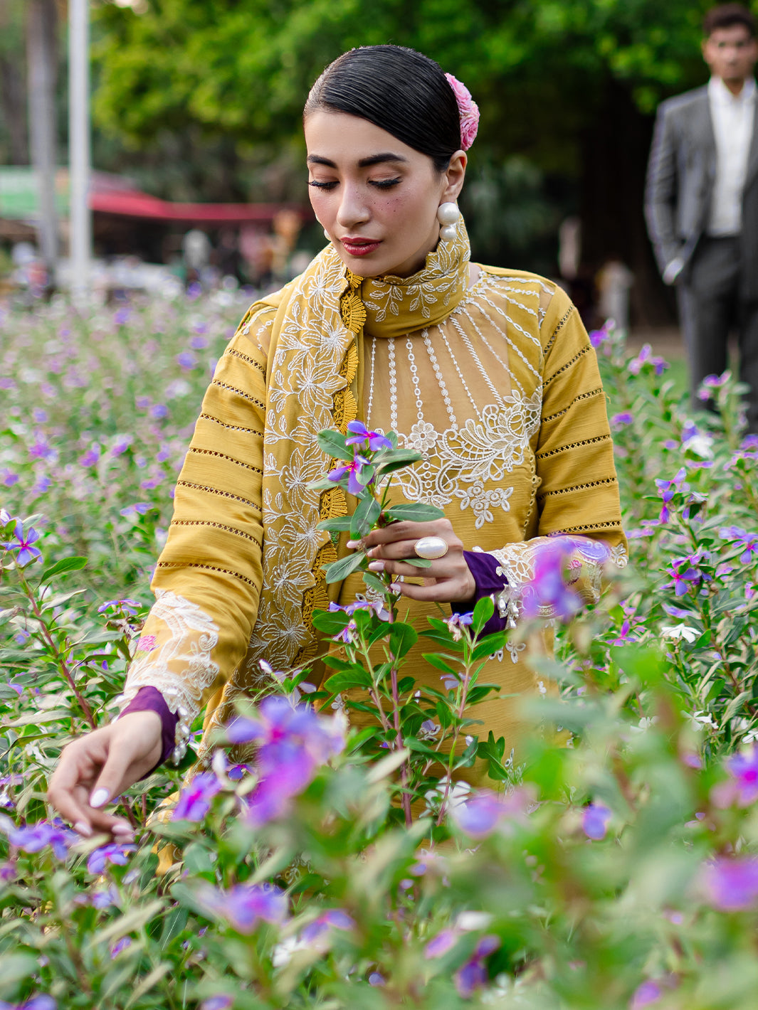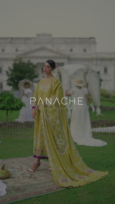 Summary: Embrace the vibrant hues of fall with the Parishay Panache PN-11 Khaddar Suit in a radiant yellow. This unstitched three-piece suit is perfect for making a statement at your next festive gathering. The shirt fabric features 0.86 meters of embroidered khaddar for the front, complemented by 1.40 meters of dyed khaddar for the back and sleeves. Intricate details like the embroidered neckline, front patches, daman, and border add a touch of traditional charm. The sleeves are further adorned with delicate embroidered lace. Paired with the shirt is a luxurious embroidered khaddar shawl, measuring 1.50 meters, with an elaborately embroidered pallu and patch. Completing the ensemble are 2.25 meters of dyed khaddar for the trousers. This stunning Pakistani suit is perfect for those seeking a blend of comfort and style. Ideal for Haldi ceremonies or evening parties, the PN-11 promises a touch of panache to your wardrobe.