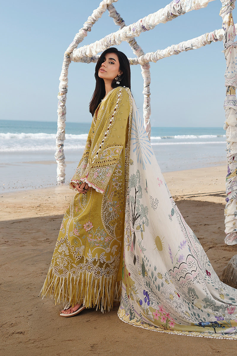 Summary: Embrace sophisticated ethnic wear with the Qalamkar Sahil Luxury Lawn suit in a distinguished olive hue. This Pakistani suit is crafted from premium lawn, a breathable fabric ideal for summer festivities. The kameez is a canvas of artistry, featuring extensive Chikankari embroidery on the front panels, back neckline, and sleeves. Further enhanced with delicate 3D flowers and motifs, this formal dress exudes elegance. This summer outfit is a perfect example of Pakistani festive clothing, making it an impeccable choice for Eid, weddings, or any grand celebration.