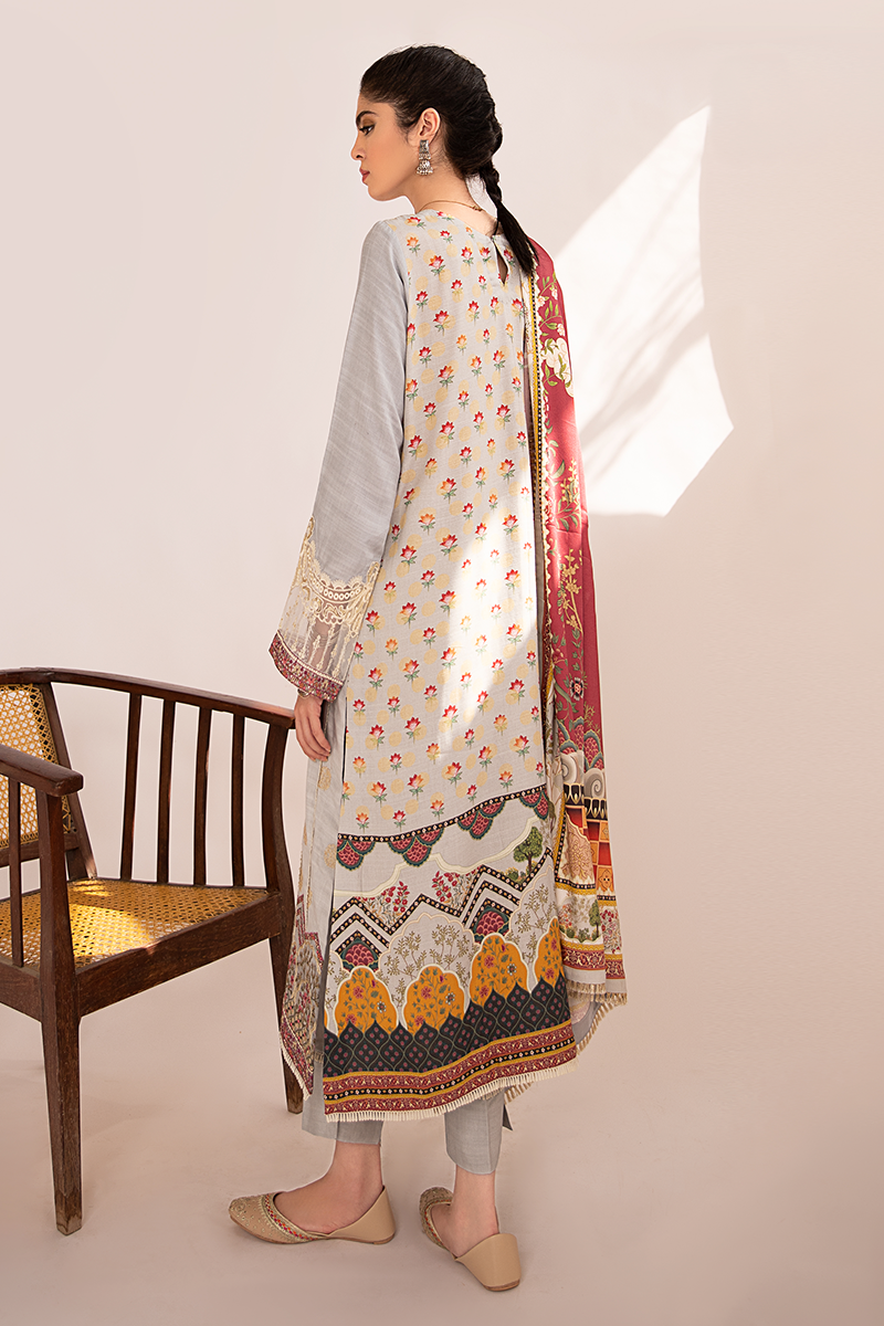 Fabric:Embroidered Front Embroidered Front Border Embroidered Neckline Digital Printed Back Plain Sleeves Embroidered Sleeves Border Digital Printed Shawl Plain Trouser |