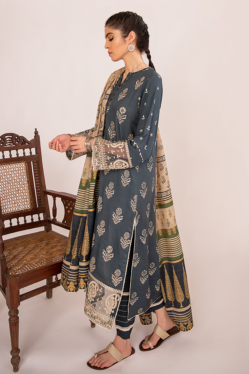 Fabric:Schiffli Embroidered Front Block Printed Back Block Printed Sleeves Embroidered Border For Front And Sleeves Block Printed Dupatta Plain Trouser |