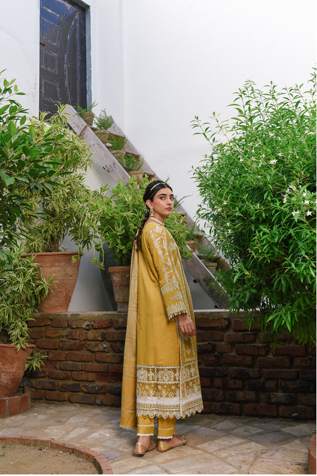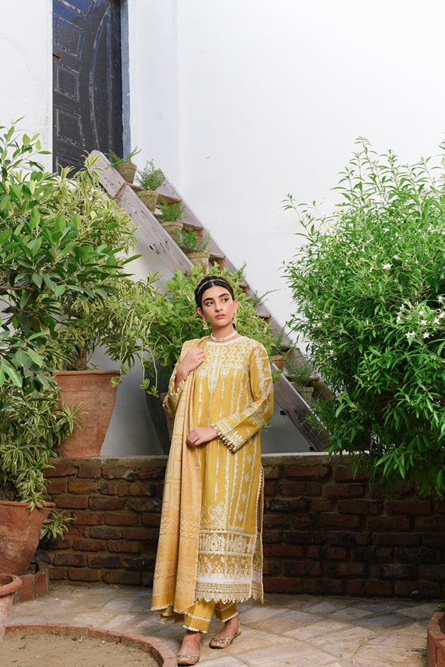 Fabric: Shirt Embroidered Bodice (Front) Embroidered Center Panel Embroidered Side Panel Left Embroidered Side Panel Right Embroidered Border (Front & Back) Embroidered Border (Sleeves) Embroidered Sleeves Plain Back Dupatta Wool Shawl Trouser Plain Trouser |