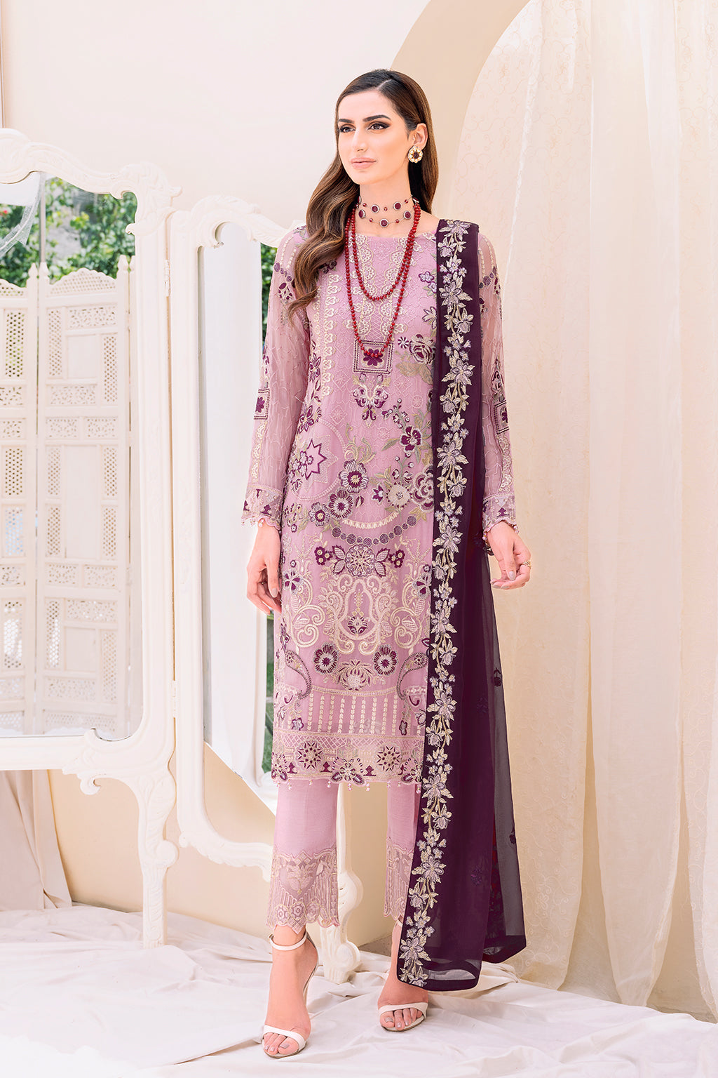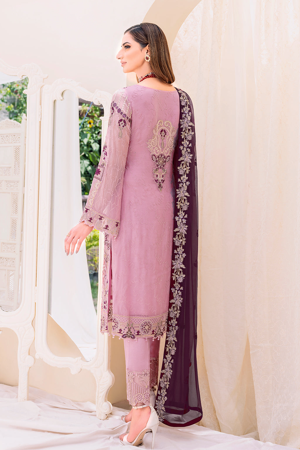 Fabric: Embroidered Chiffon front with sequins Embroidered Chiffon back with pasting Embroidered Chiffon sleeves Embroidered organza sleeves lace with pasting Embroidered organza ghera lace Embroidered chiffon dupatta – 2.50 Meter Raw silk trouser – 2.5 Meter Embroidered organza trouser lace |