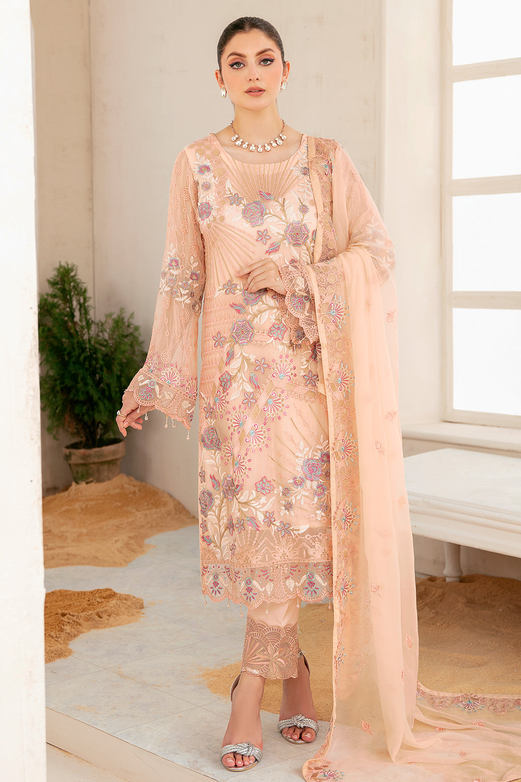 Embroidered Chiffon front with sequins
