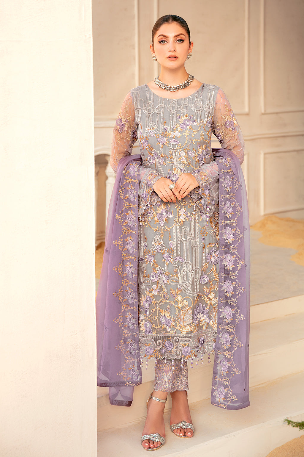 Embroidered chiffon dupatta – 2.50 Meter