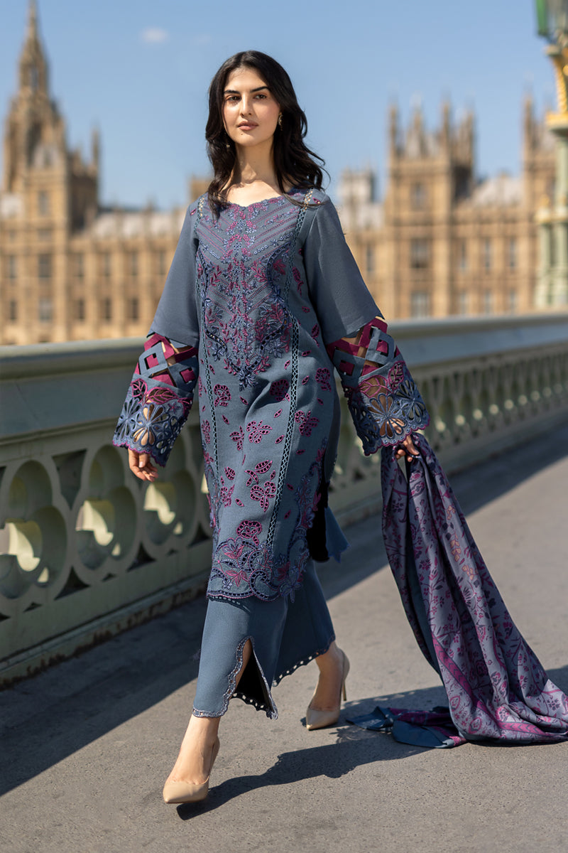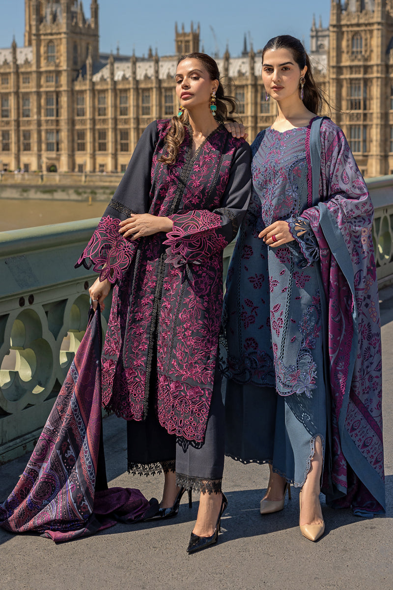 Fabric: Karandi Embroidered Shirt Front Centre Panel 50"" Karandi Embroidered Shirt Front Right Panel 50"" Karandi Embroidered Shirt Front Left Panel 50"" Dyed Organza Embroidered Front Daman Motif 1Pc Dyed Organza Embroidered Sleeve Border 45"" Karandi Dyed Plain Back 48"" Karandi Dyed Plain Sleeve 26"" Dyed Karandi Trouser 2.5 Meters Woolen 2-Sided Print Shawl 2.5 Meters |