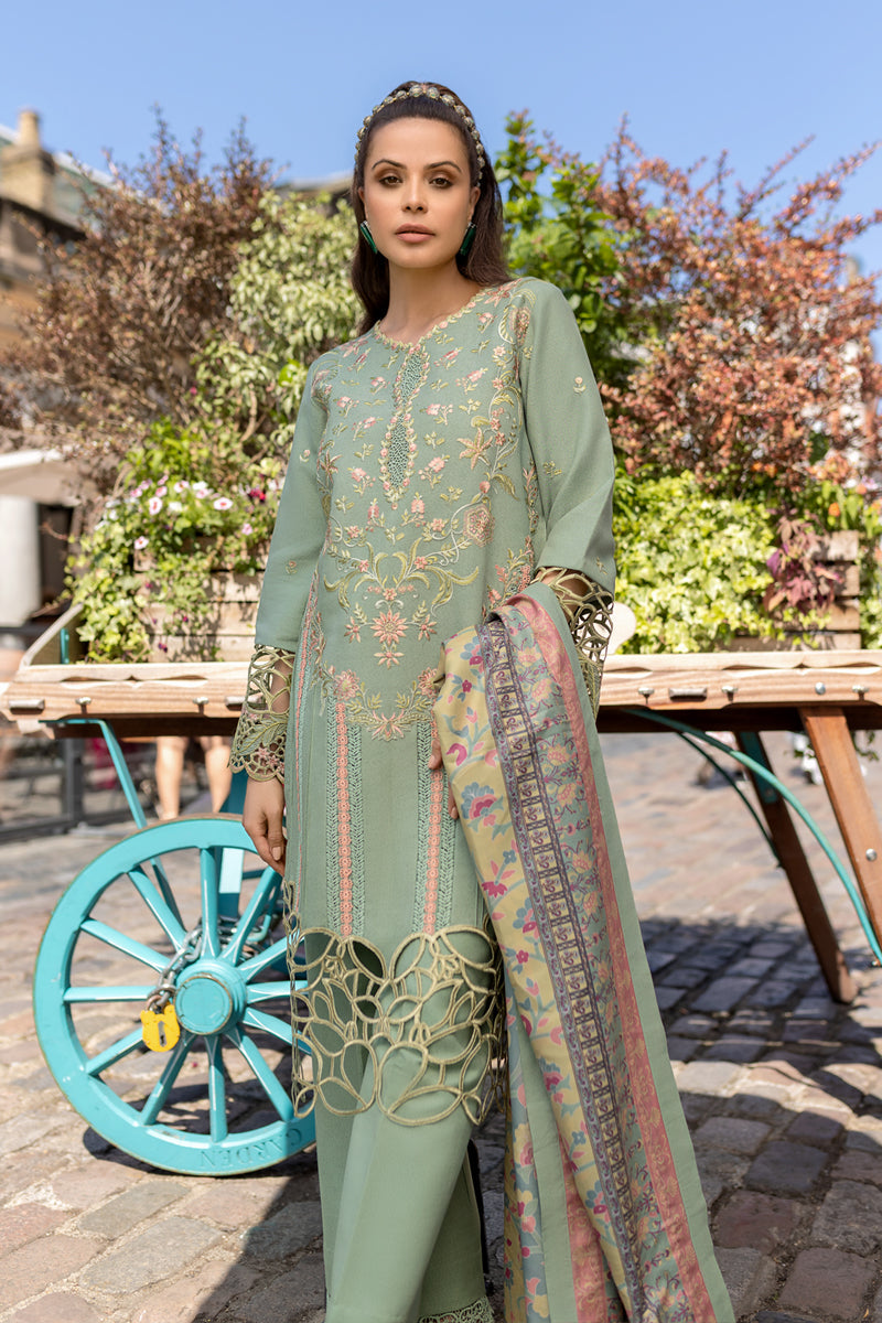 Fabric: Karandi Embroidered Shirt Front 45"" Karandi Embroidered Sleeve 26"" Dyed Organza Embroidered Front Daman 12"" 1PC Dyed Organza Embroidered Sleeve Border 01 45"" Dyed Organza Embroidered Sleeve Border 02 45"" Karandi Dyed Plain Back 48"" Schiffli 3D Big Lace 162"" Schiffli 3D Small Lace 81"" Dyed Karandi Trouser 2.5 Meters Woolen 2-Sided Print Shawl 2.5 Meters |