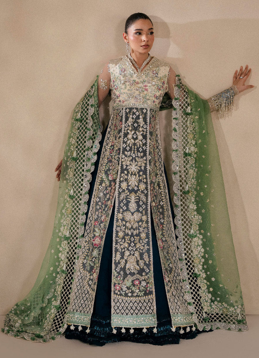 Summary: Embrace regal elegance with this exquisite Pakistani suit by Republic Womenswear. The stunning long shirt is crafted from delicate off-white net, creating an ethereal and airy silhouette perfect for Spring/Summer events. This paneled kameez features a beautifully embellished bodice and intricate floral and geometric embroidery, showcasing masterful Pakistani craftsmanship. The light hue and luxurious fabric make this formal wear an impeccable choice for wedding receptions, Nikah ceremonies, or grand festive soirées. A masterpiece of ethnic wear, this outfit is designed for those seeking a sophisticated and memorable look for their next big celebration.