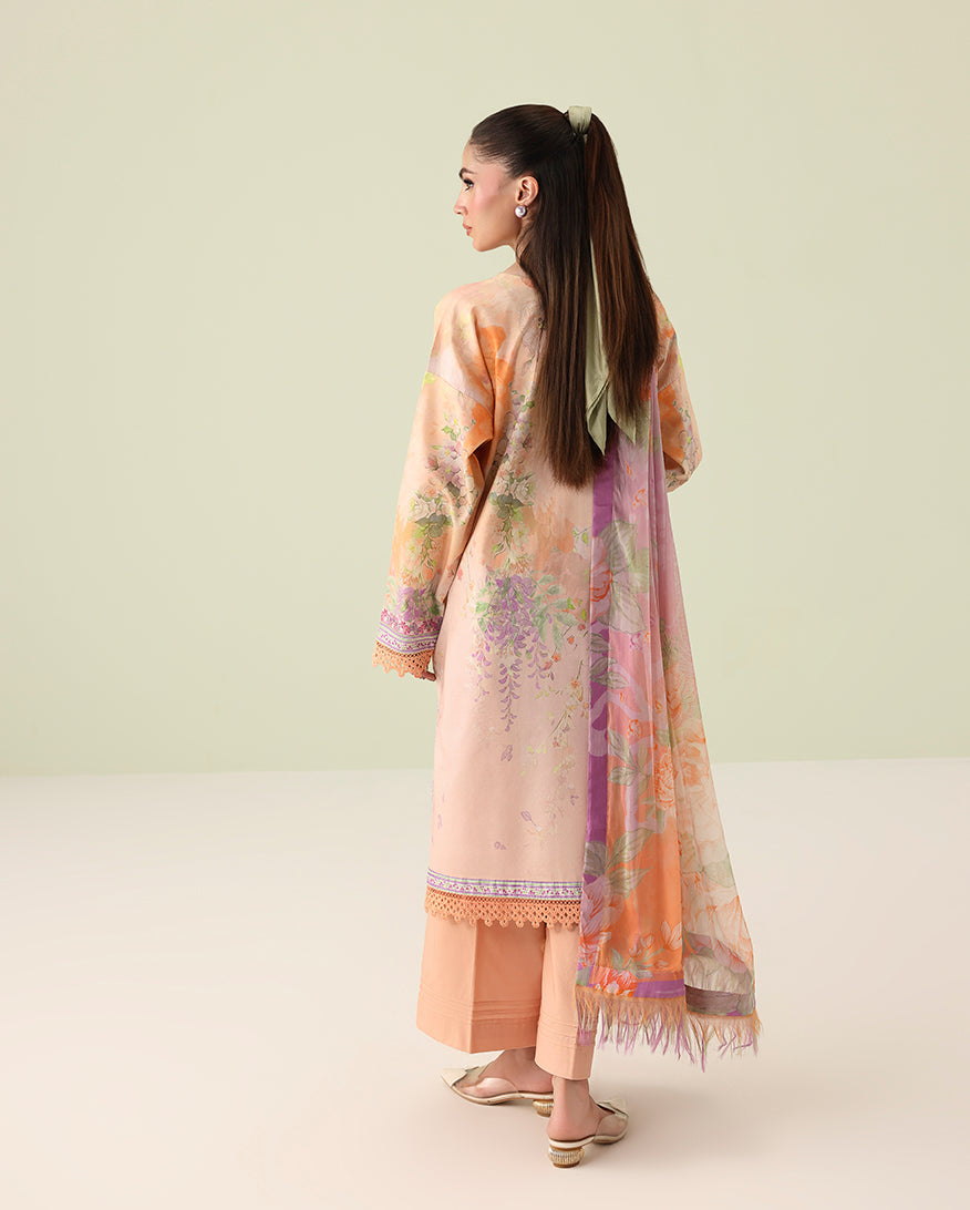 Summary: Embrace summer elegance with the 'Sunlit Fern' by Roheenaz. This beautiful Pakistani lawn suit features a soft peach kameez, crafted from premium, breathable lawn fabric perfect for the warmer months. The shirt is adorned with a delicate floral print and an exquisitely embroidered organza neckline, adding a touch of formal grace. This unstitched ethnic wear offers a classic silhouette, making it a versatile addition to any wardrobe. As a quintessential Pakistani summer dress, it’s ideal for daily wear, casual get-togethers, or serene Eid mornings, blending comfort with sophisticated style.