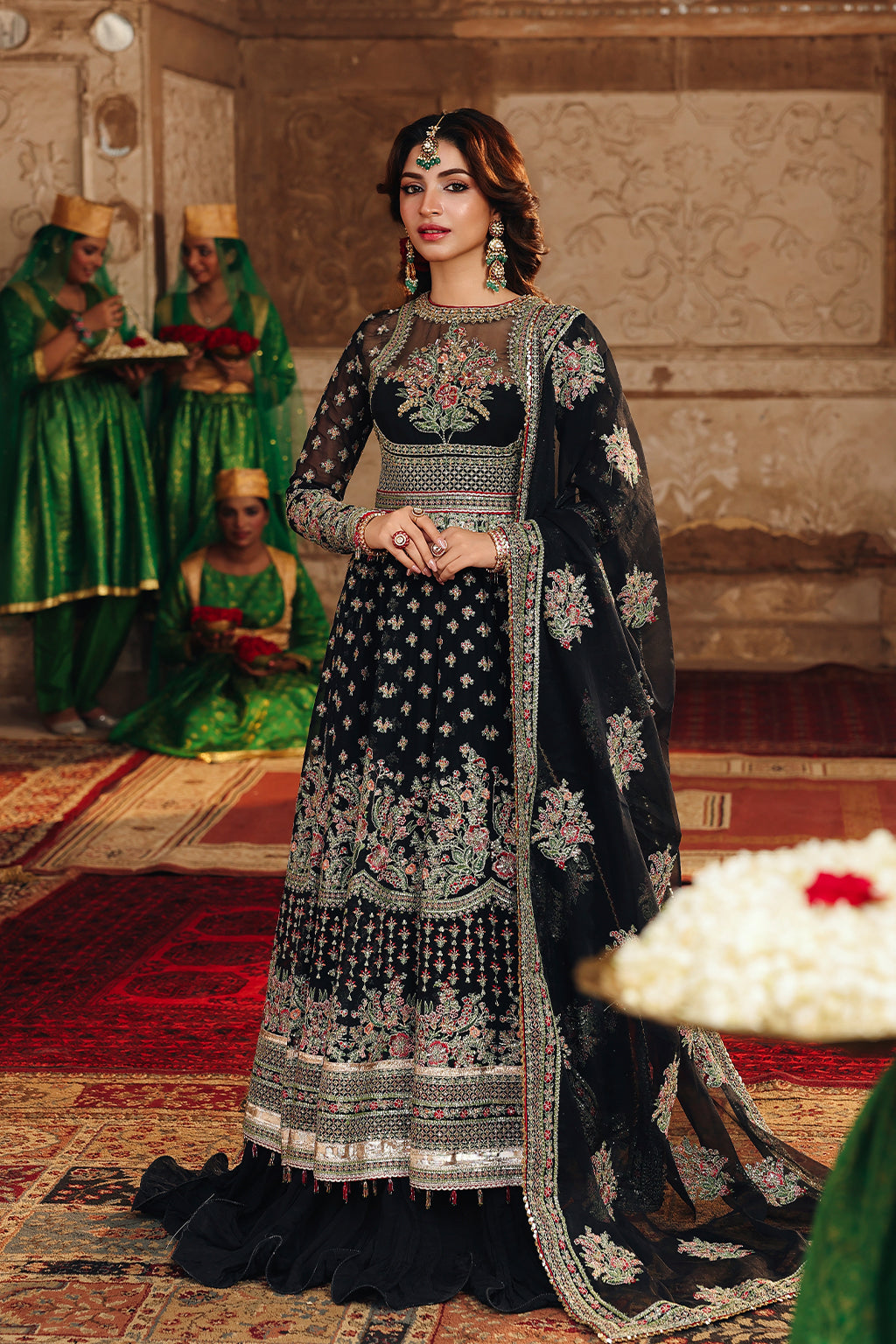 Summary: Exude timeless elegance in 'Meharbano' by Saad Shaikh, a stunning black Pakistani suit crafted from delicate organza. This luxury formal wear features intricate hand embellishments and exquisite embroidery on the bodice, panels, and sleeves, creating a masterpiece of design. The lightweight organza fabric makes it a perfect choice for spring/summer weddings and festive gatherings. Black, a symbol of sophistication, makes this ethnic wear ideal for grand evening events and wedding parties. This unstitched ensemble is your canvas to create a bespoke Pakistani dress, perfect for making a statement at any formal occasion.
