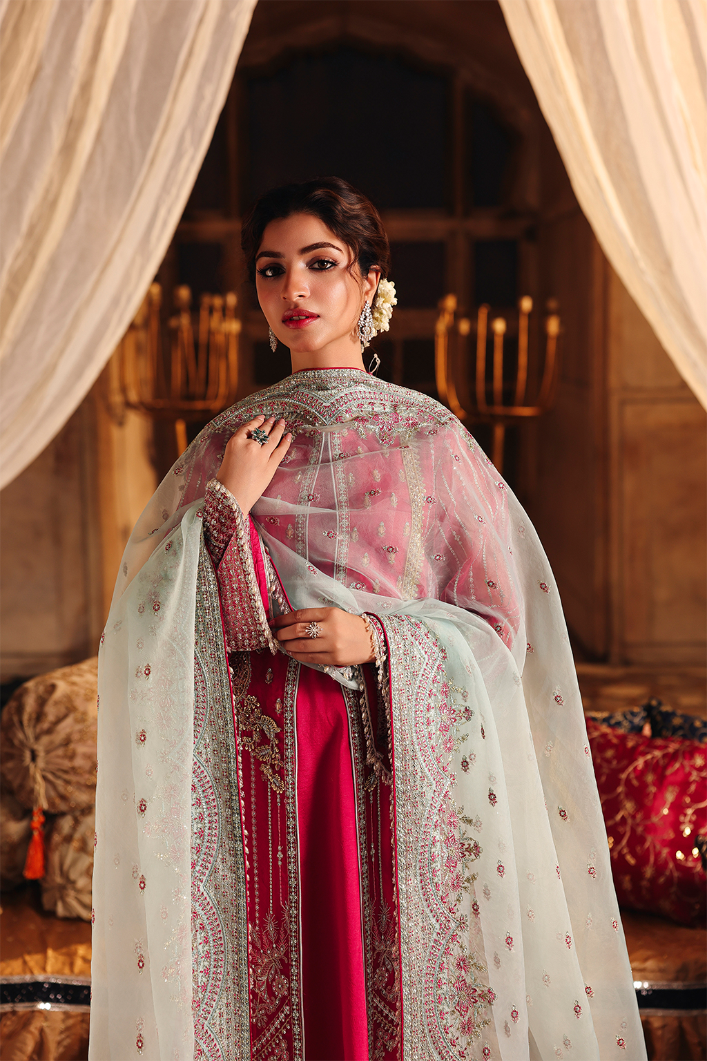 Summary: Embrace festive elegance with the Saad Shaikh 'Shafaq' ensemble from the Silsila collection. This exquisite Pakistani suit features a vibrant hot pink kameez crafted from premium organza, a lightweight fabric ideal for Spring/Summer celebrations. The shirt is a masterpiece of design, showcasing intricate hand embellishments and detailed embroidery across the front panels, back, and sleeves. This luxury formal wear is perfect for making a statement at weddings and grand festivities. As a standout piece of ethnic wear, this unstitched outfit is the epitome of grace, making it an ideal choice for Eid or wedding guest attire.