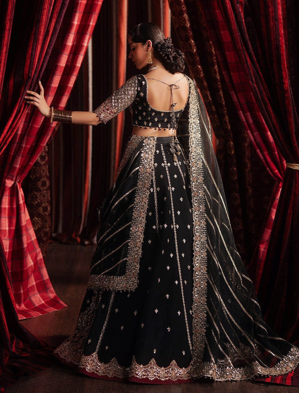 Fabric: Shirt: Rawsilk BLACK RAW SILK 39"" EMBROIDERED FRONT PANELS 6 PCS BLACK RAW SILK 39"" EMBROIDERED BACK PANELS 6 PCS BLACK RAW SILK 39"" EMBROIDERED WAIST BELT BORDER 0.98 M BLACK ORGANZA 60"" EMBROIDERED SLEEVES 2 PCS BLACK ORGANZA 60"" EMBROIDERED DUPATTA 2.60 M RED RAW SILK 39"" EMBROIDERED SLEEVES PATCH 2 PCS RED RAW SILK 39"" EMBROIDERED FRONT+BACK PANELS BORDER 5.25 M |