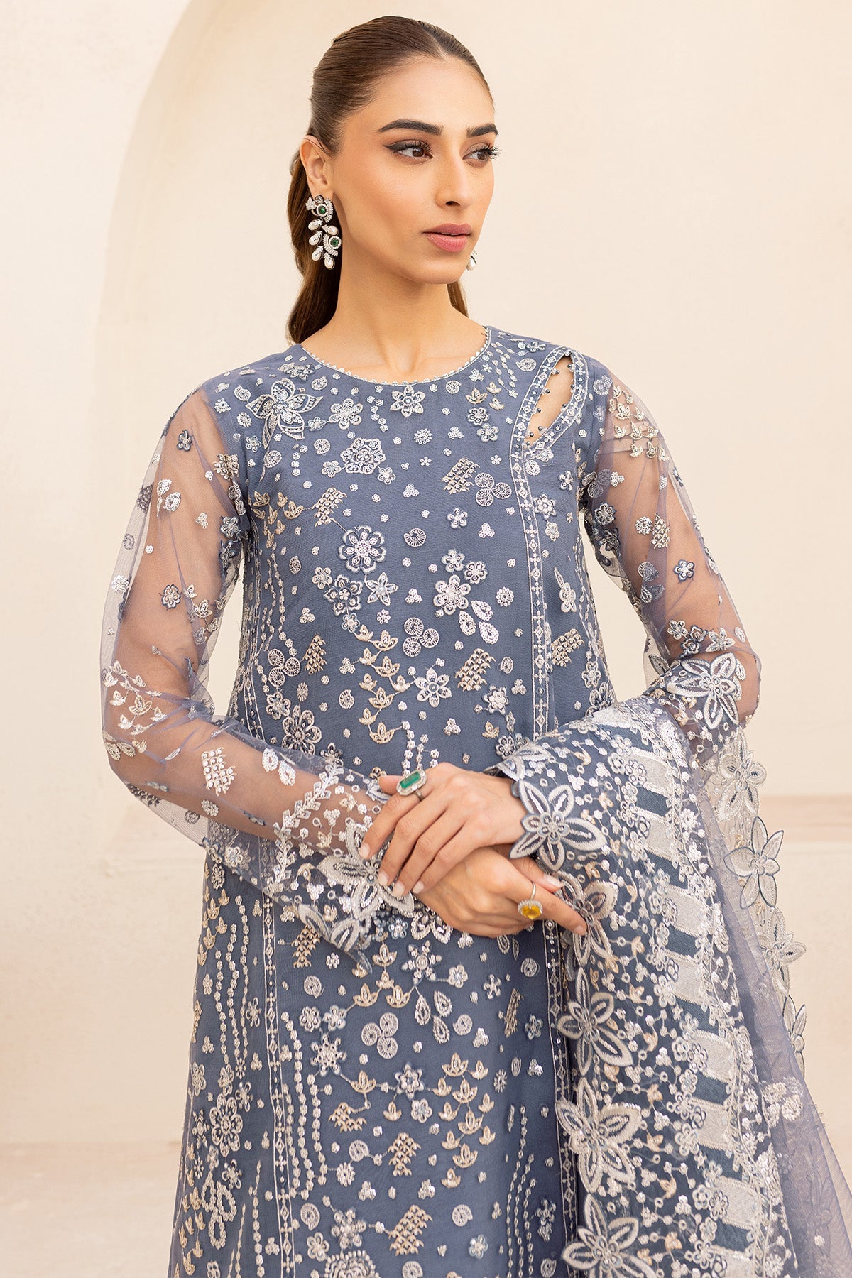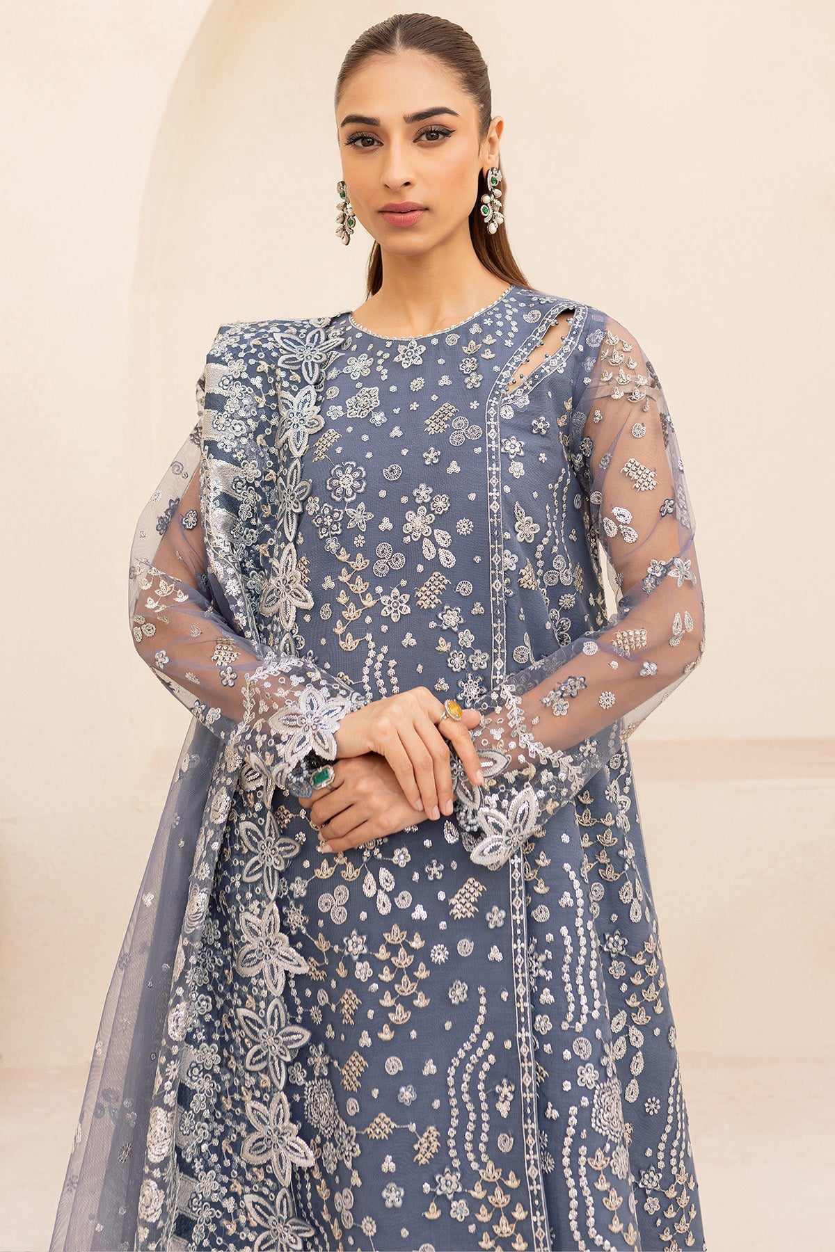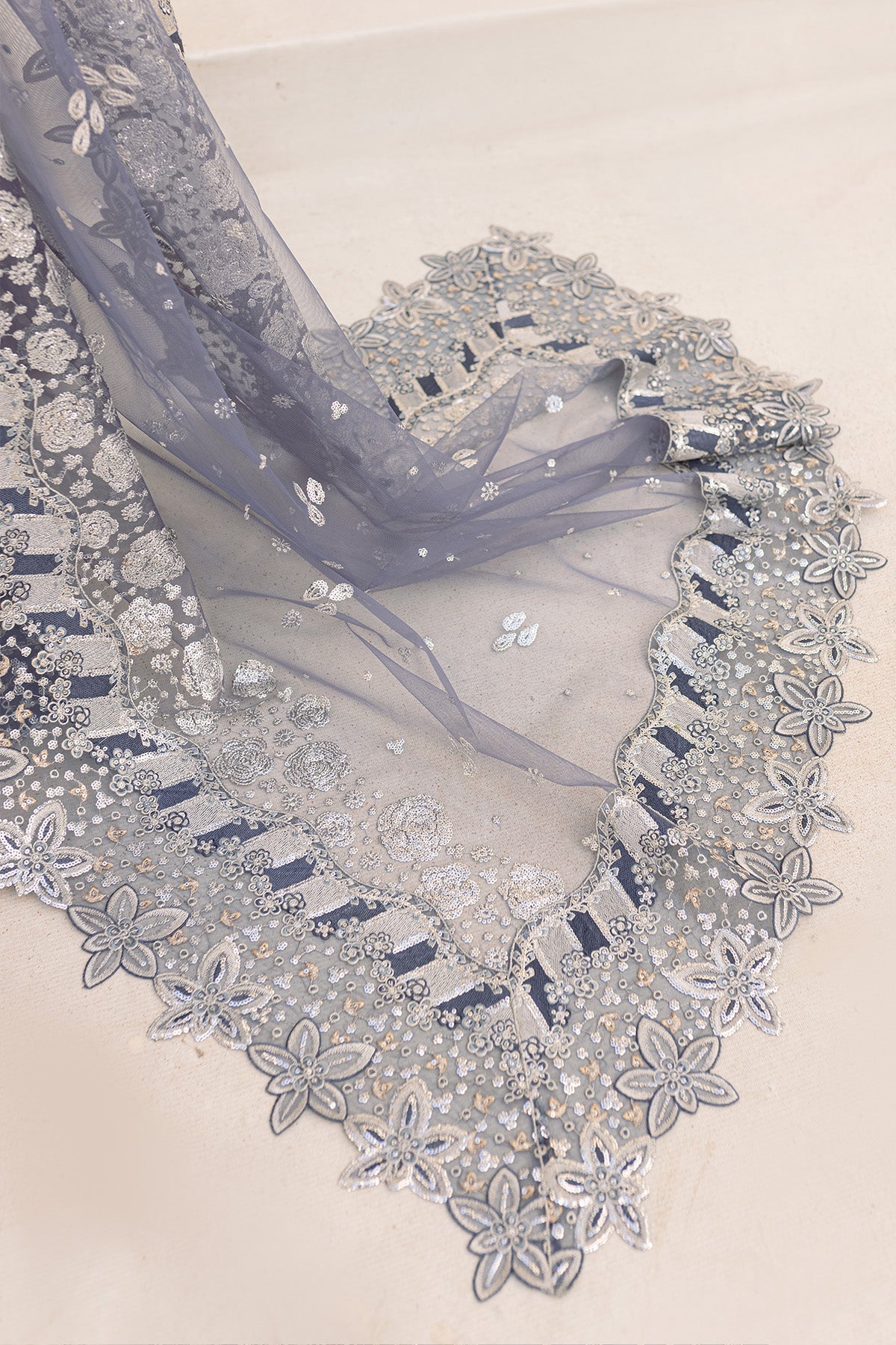 Summary: Embrace sophisticated elegance with the 'Dusky Shadow' Pakistani suit from Farasha's Luxury Formals collection. This stunning ethnic wear piece is crafted from delicate grey net fabric, making it a breathable and graceful choice for the Spring/Summer season. The kameez features intricate embroidery across the front, back, and sleeves, presenting a vision of masterful craftsmanship. As a premier example of Pakistani formal wear, this unstitched outfit is perfect for creating a bespoke look for weddings, evening parties, or any grand celebration. Shop this exquisite festive clothing online to add a touch of timeless charm to your wardrobe.