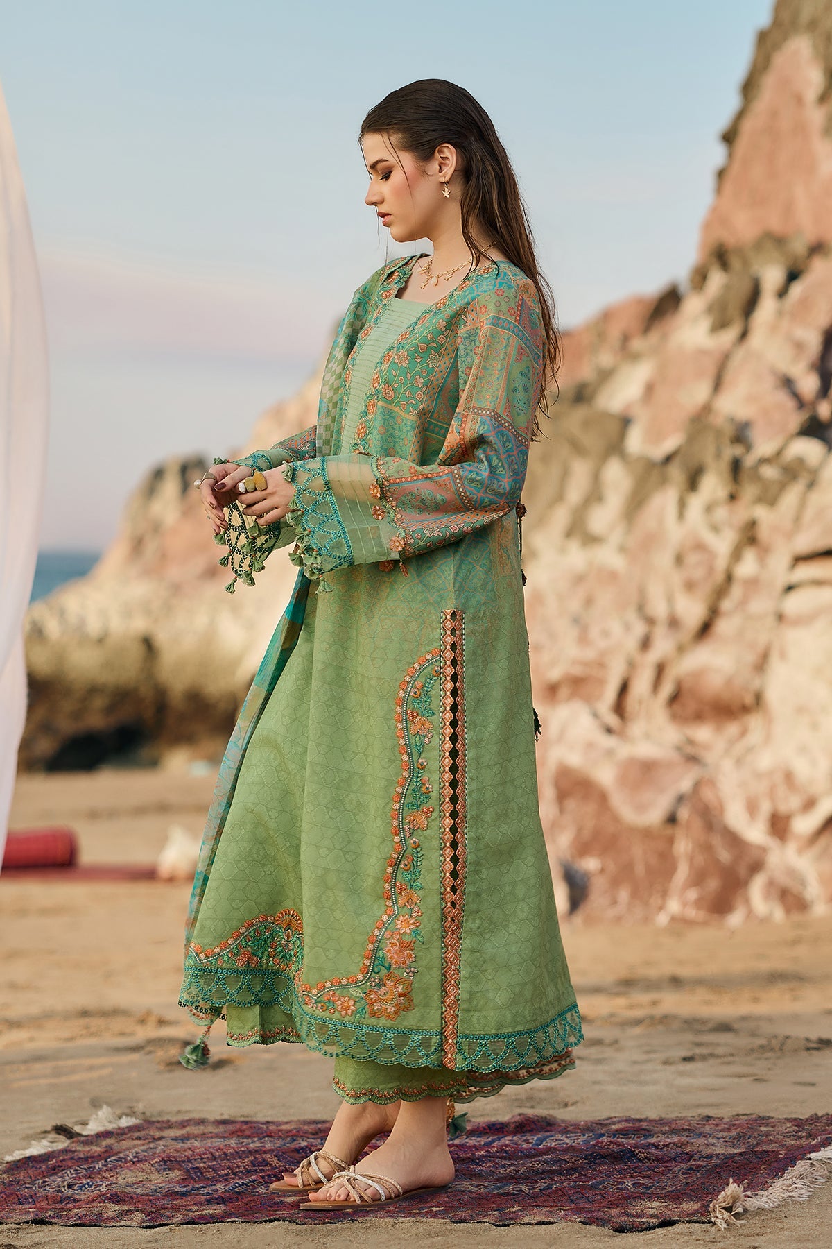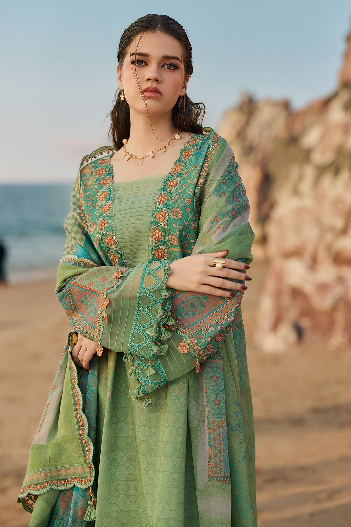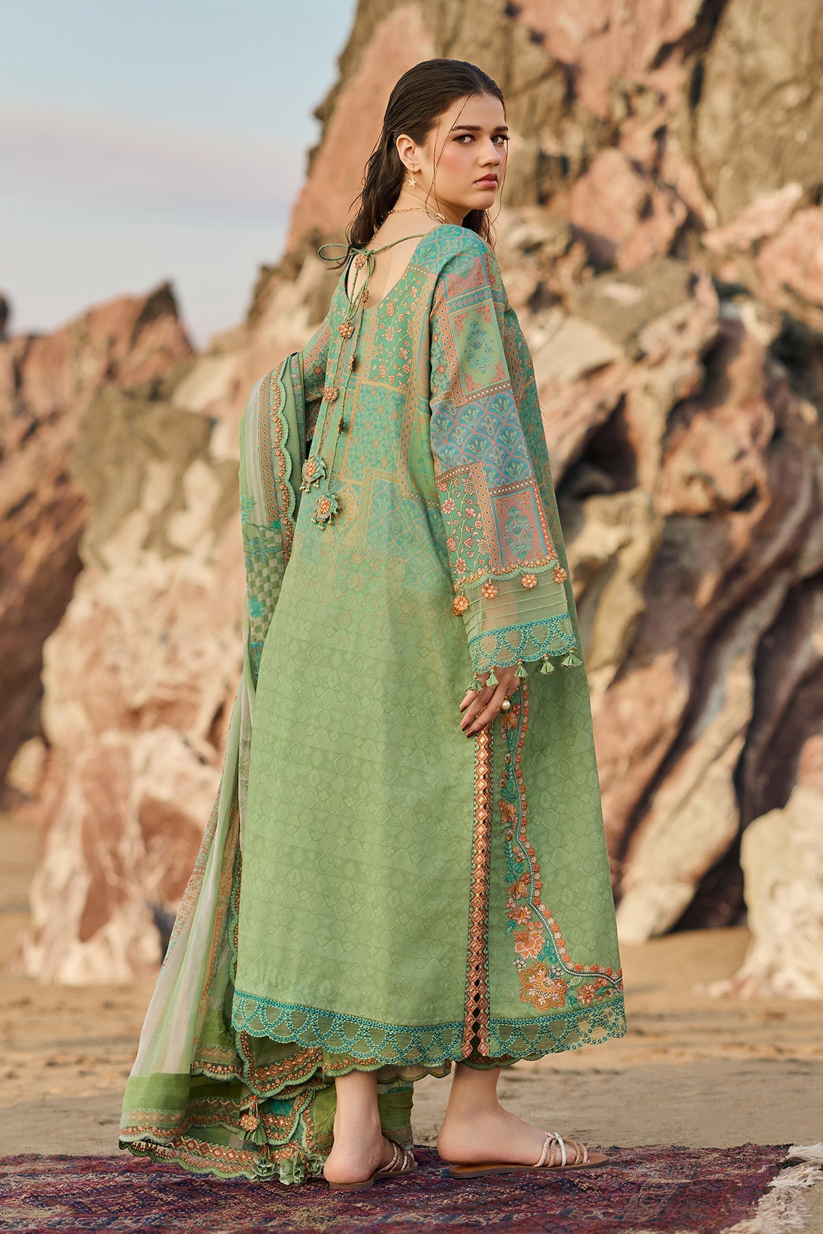 Fabric: Embroidered Printed Swiss Front 1.25 Meter Printed Swiss Back and Sleeves 2 Meter Embroidered Front & Back and Sleeves Patti 3 Meter Embroidered Front Neck Patti 1.50 Meter Embroidered Chok Patti 3 Meter Embroidered Sleeves and Trouser Patti 3 Meter Embroidered Dupatta Pallu Patti 2.50 Meter Printed Cotton Trouser 2.50 Meter Embroidered Printed Chiffon Dupatta 2.50 Meter |
