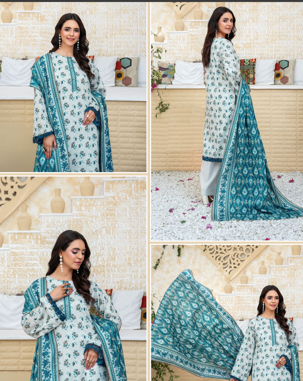 Fabric: Top Fabric: Printed Airjet Lawn Bottom Fabric: Dyed Airjet Lawn Dupatta Fabric: Printed Voile Lawn |