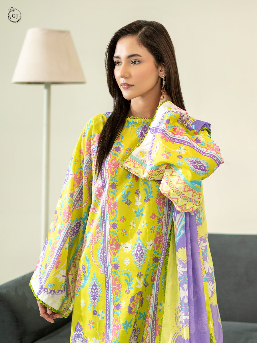 Summary: Embrace the vibrant charm of the GullJee Cocoon Lawn – A11, a stunning Pakistani Lawn Dress. The kameez features a radiant yellow base, brought to life with a delicate digital print. Crafted from premium lawn fabric, this unstitched suit is exceptionally lightweight and breathable, making it a perfect summer outfit. The bright, cheerful yellow hue makes this ethnic wear an excellent choice for daily wear or casual daytime festive events like Haldi. This versatile Pakistani suit offers a blend of traditional aesthetics and modern comfort, making it an ideal choice for your wardrobe.