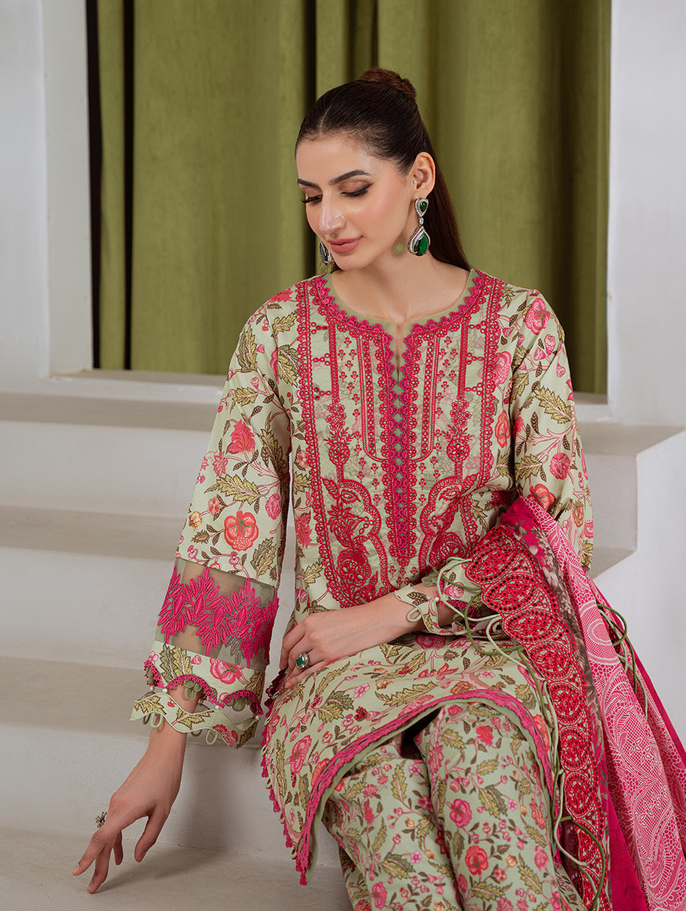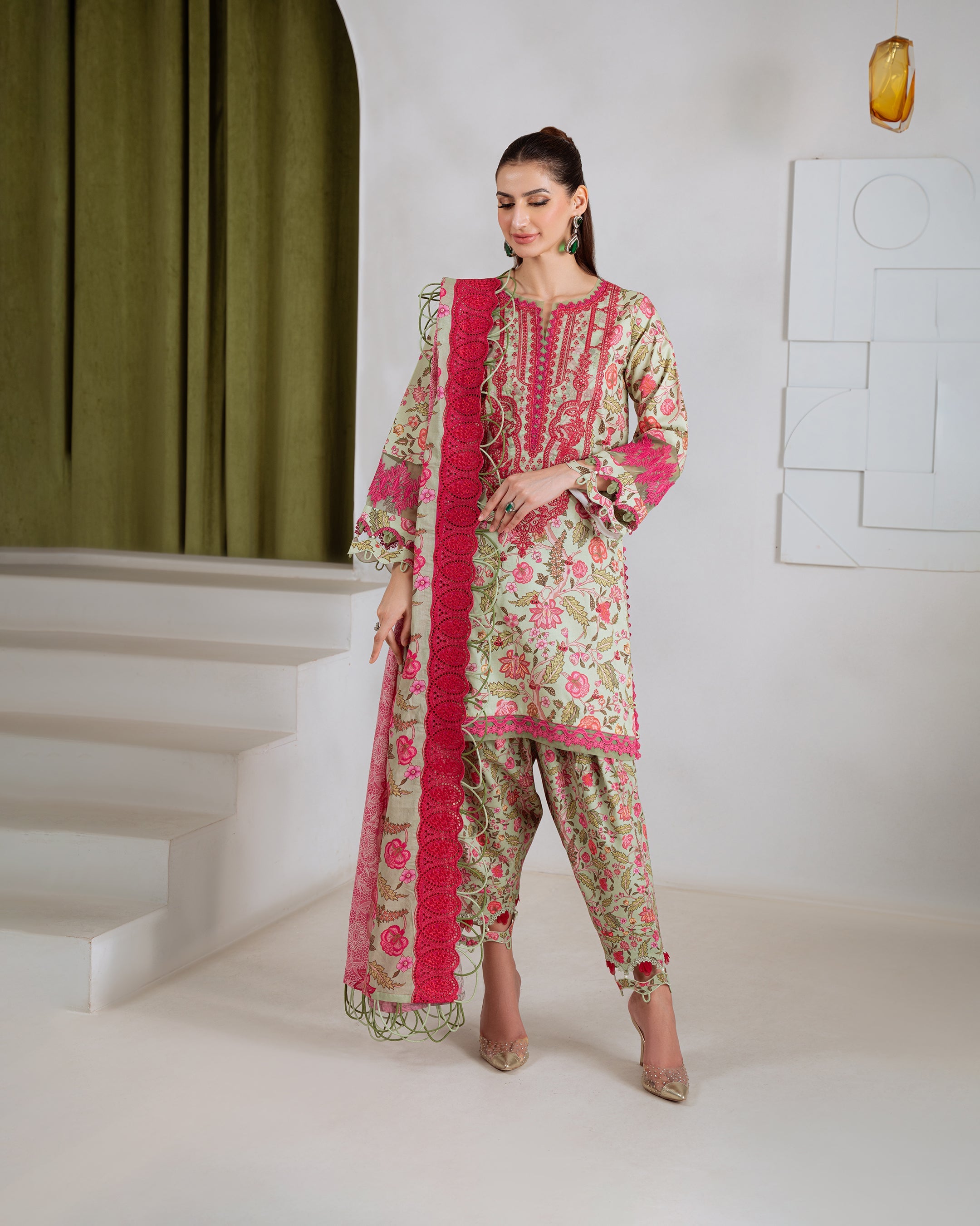 3M Digital Printed Chikan Embroidered Lawn Shirt