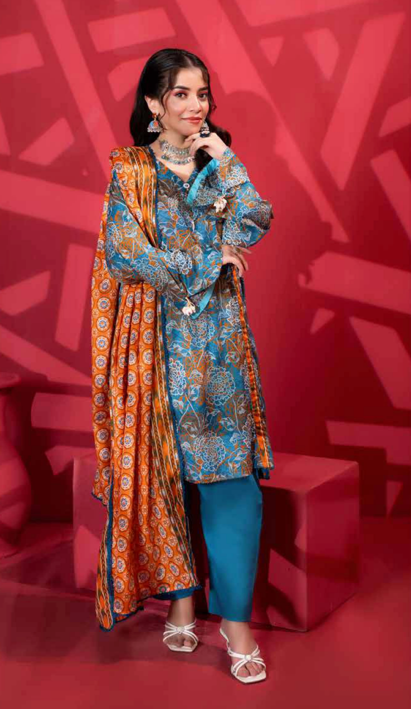 Fabric: Front: Digital Printed Airjet Lawn Sleeves: Digital Printed Airjet Lawn Dupatta: Digital Printed Airjet Lawn Trouser: Dyed Trouser |