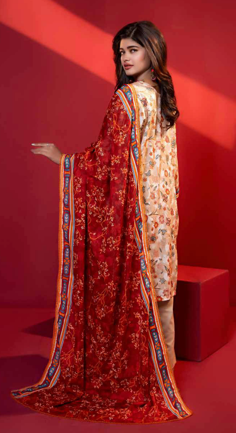 Fabric: Front: Digital Printed Airjet Lawn Sleeves: Digital Printed Airjet Lawn Dupatta: Digital Printed Airjet Lawn Trouser: Dyed Trouser |