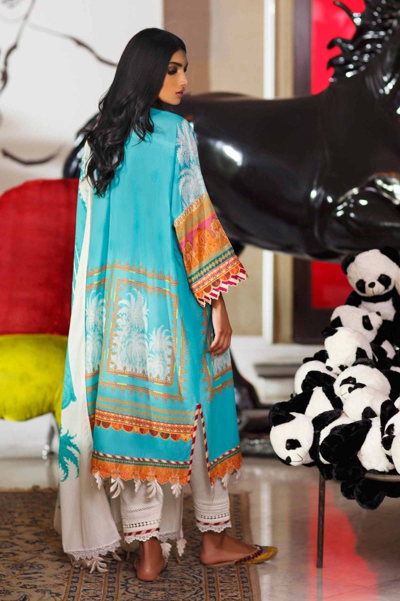 Fabric: A Firozi, cream and gold digitally printed Lawn shirt with traditional Kashmiri paisley motifs. Paired with a digitally printed cream and Firozi Lawn dupatta with Kashmiri paisley motifs. Digitally Printed Lawn Shirt Front 1.15 meters Digitally Printed Lawn Shirt Back 1.15 meters Digitally Printed Lawn Sleeves 0.6 meter Digitally Printed Dupatta on Lawn 2.40 meters |