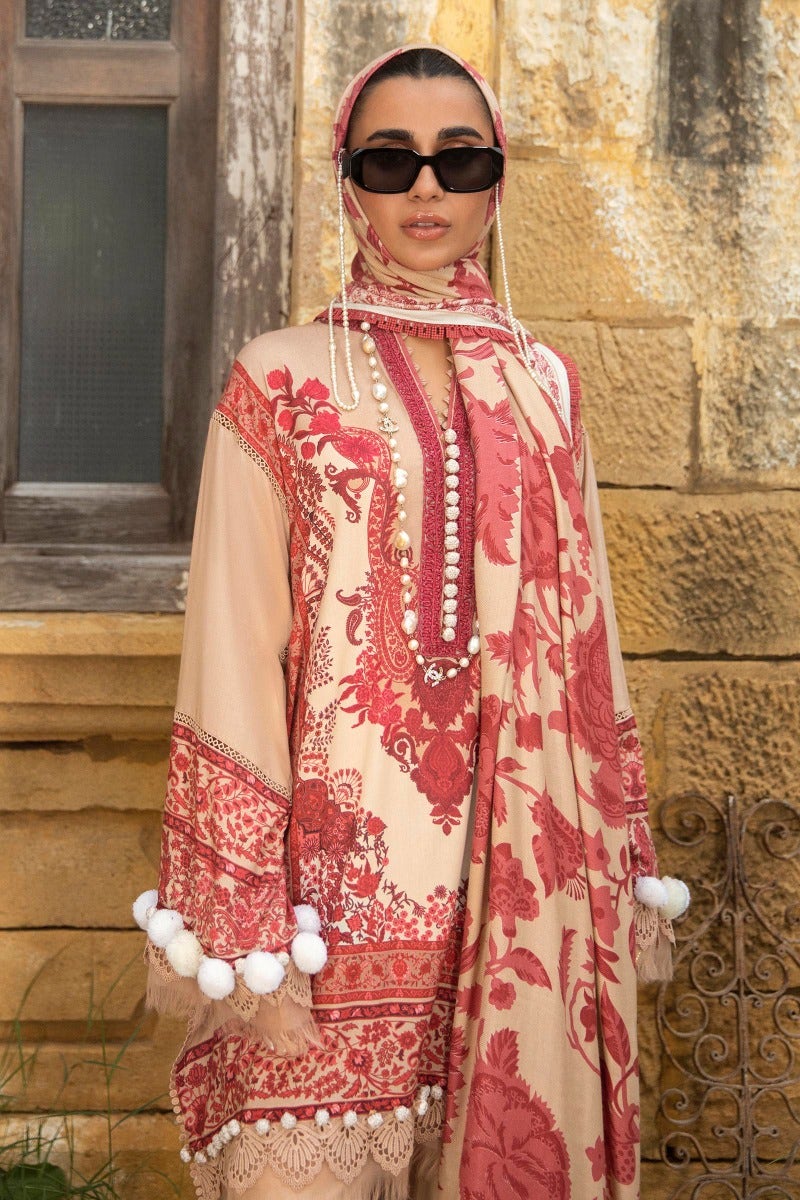 Fabric: This ensemble is inspired by this collection’s muse: YOU. Featuring shades of rouge and punch, cream, and beige with ace craftsmanship. Complemenred by beige pants and a gorgeous chintz-printed herringbone shawl.