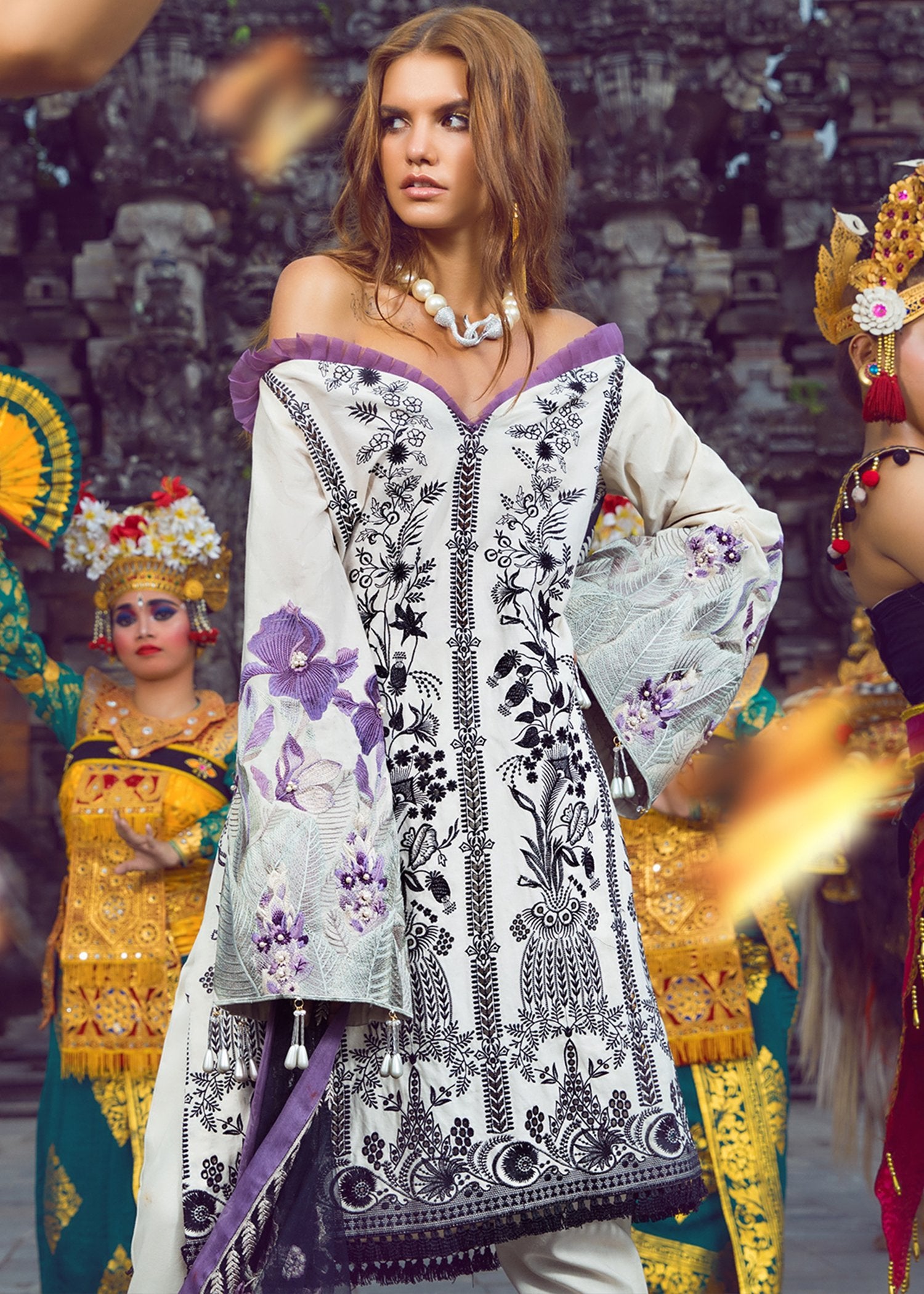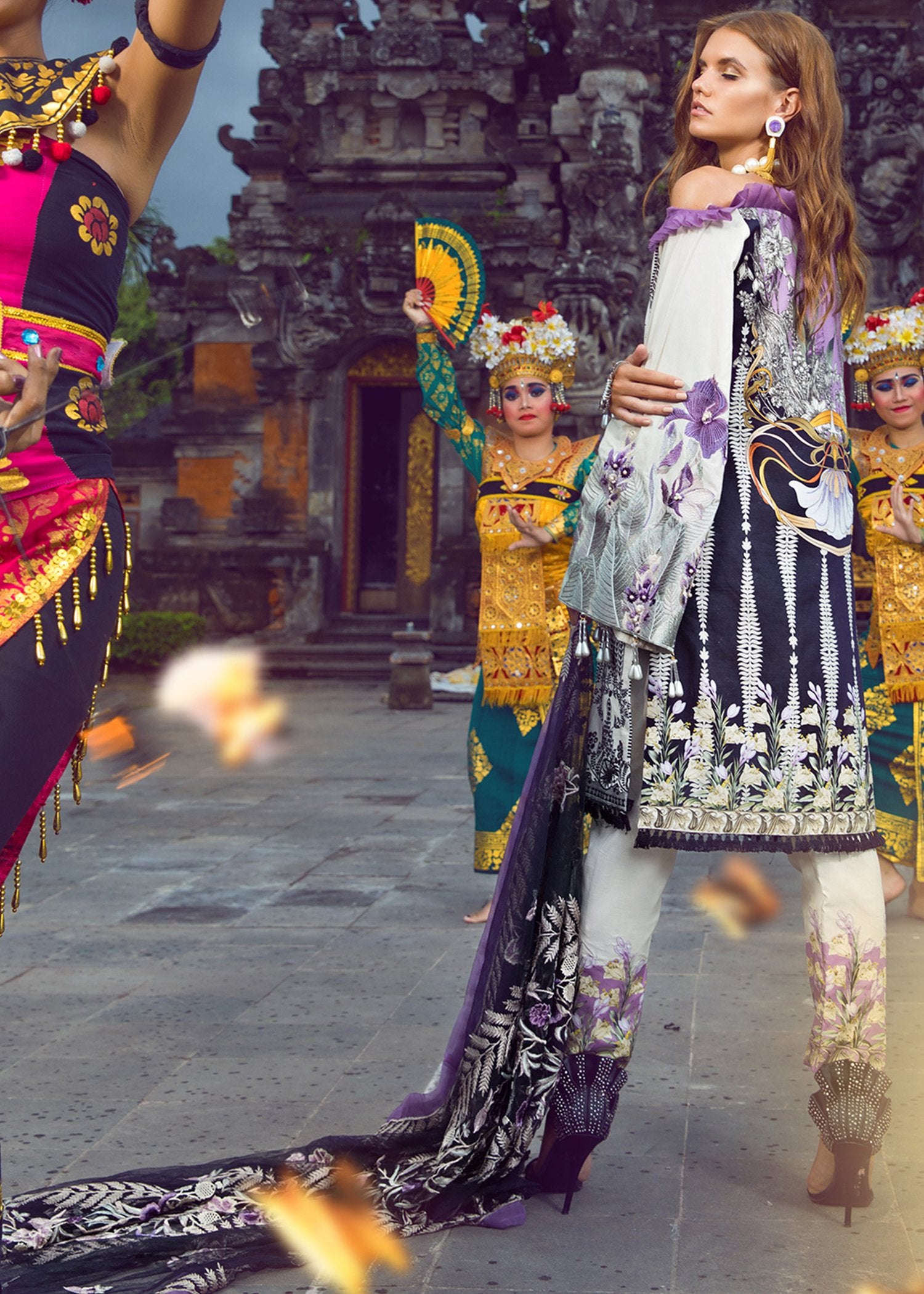 Fabric: Lawn Back (digital): 1.23 Meter Lawn Schiffli Front: 1 Yard Plain Sleeves: 25” Sleeves Patch: 2 Piece Trouser Cambric: 2 Meter Dupatta Poly Net Embroidered: 2.66 Meter Note : Stitching with extra embellishments. |
