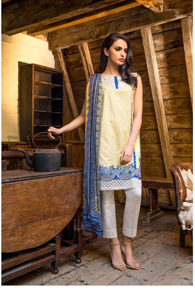 Fabric | Package Contents: - Printed Chiffon Dupatta - Printed Shirt Front - Printed Shirt Back - Printed Sleeves - Plain Dye Trouser - Embroidered Front Panel - Embroidered Neckline - Embroidered Border - Embroidered Patch |