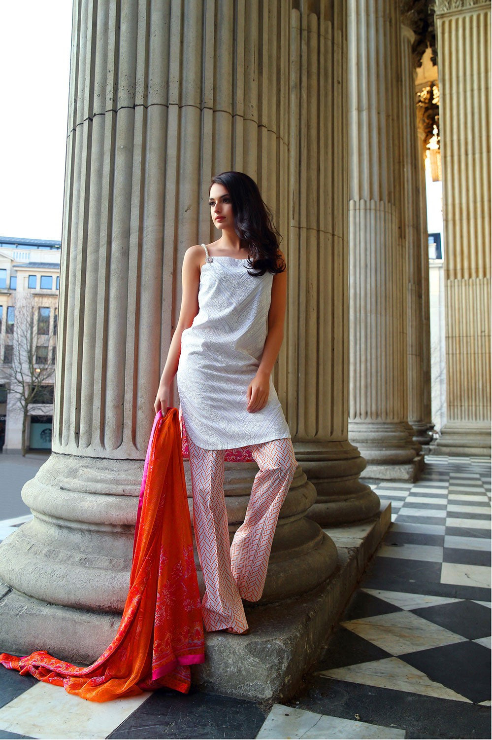 Fabric | Package Contents: - Printed Chiffon Dupatta - Embroidered Shirt Front - Printed Shirt Back - Printed Sleeves - Printed Trouser |