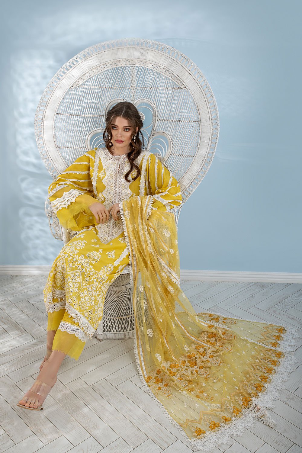 Fabric: Embroidered Front Embroidered Neckline Patch Digital Print Back Dyed Sleeves Dyed Trouser Embroidered Net Dupatta (extra laces, hangings and accessories are not included) Note: Product color may vary slightly due to photographic lighting or your device settings. |