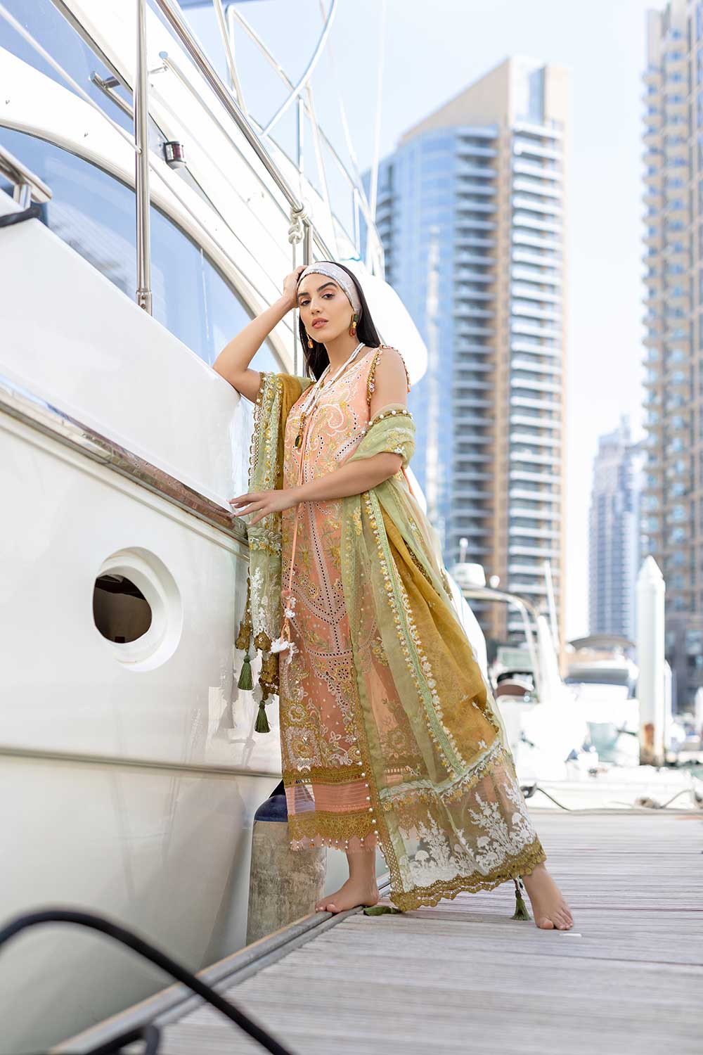 Fabric: Embroidered Front Embroidered Daman Patch Embroidered Neckline Embroidered Sleeves Patch Plain Dyed Sleeves Plain Dyed Trouser Plain Dyed Back Embroidered Slub Organza Dupatta Center Panel Embroidered Poly Organza Dupatta Side Panels Embroidered Organza Dupatta Pallu (extra laces, hangings and accessories are not included) Note: Product color may vary slightly due to photographic lighting or your device settings. |
