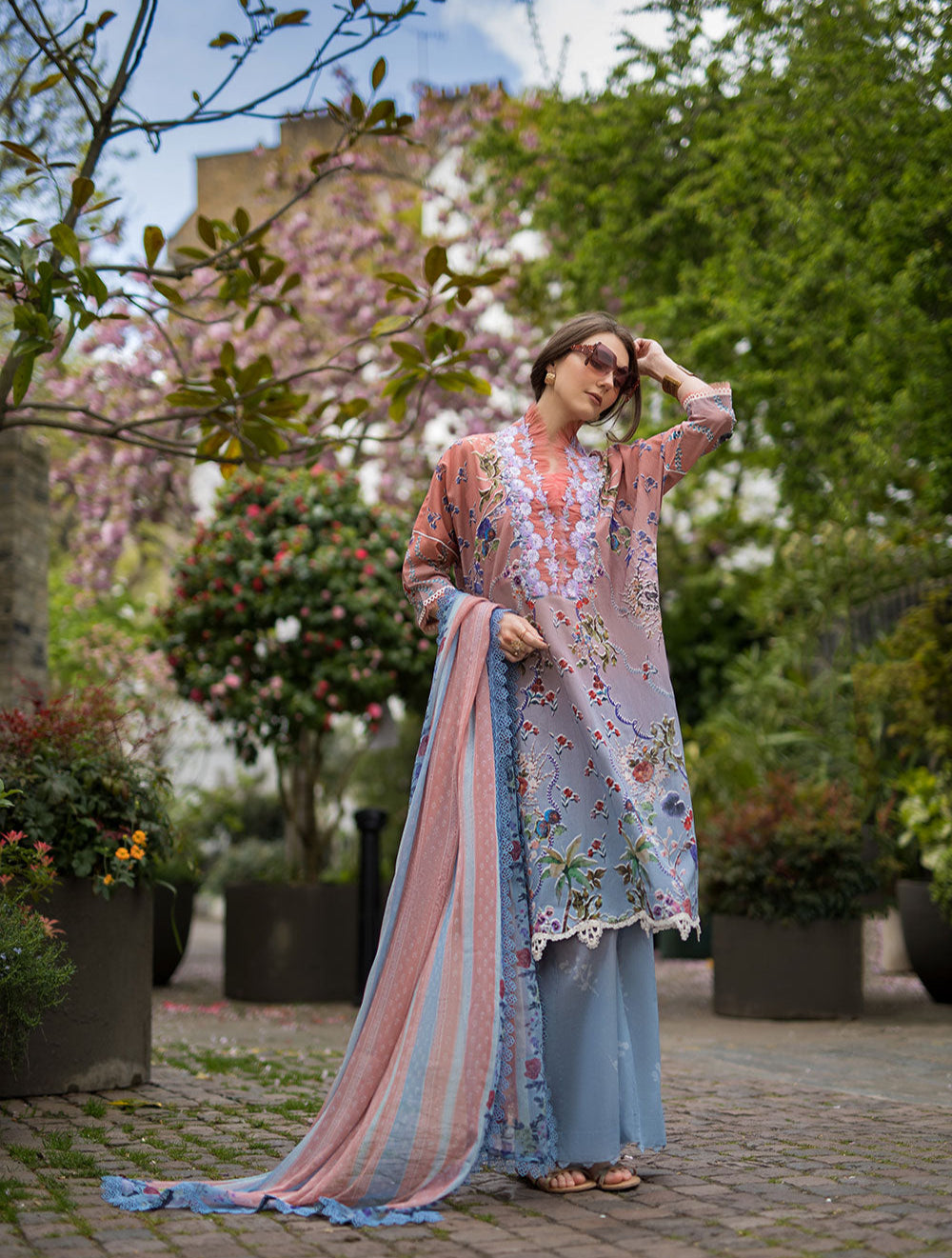 Fabric: Embroidered Daman patch Embroidered Sleeves patch Printed Lawn Front Printed Lawn Back Printed Lawn Sleeves Printed Lawn Trouser Printed Chiffon Dupatta (extra laces, hangings and accessories are not included) |