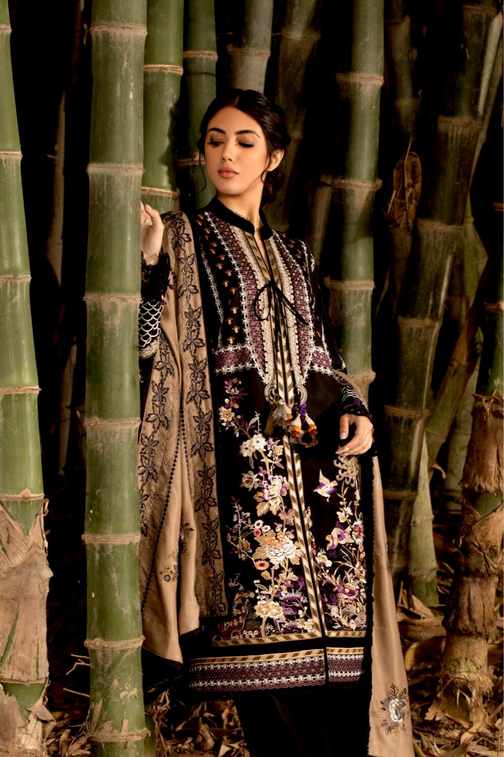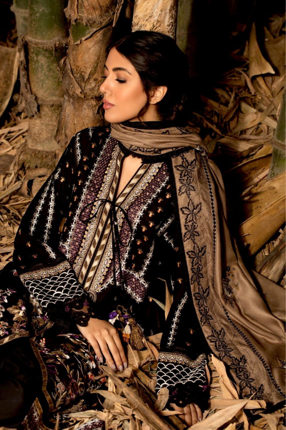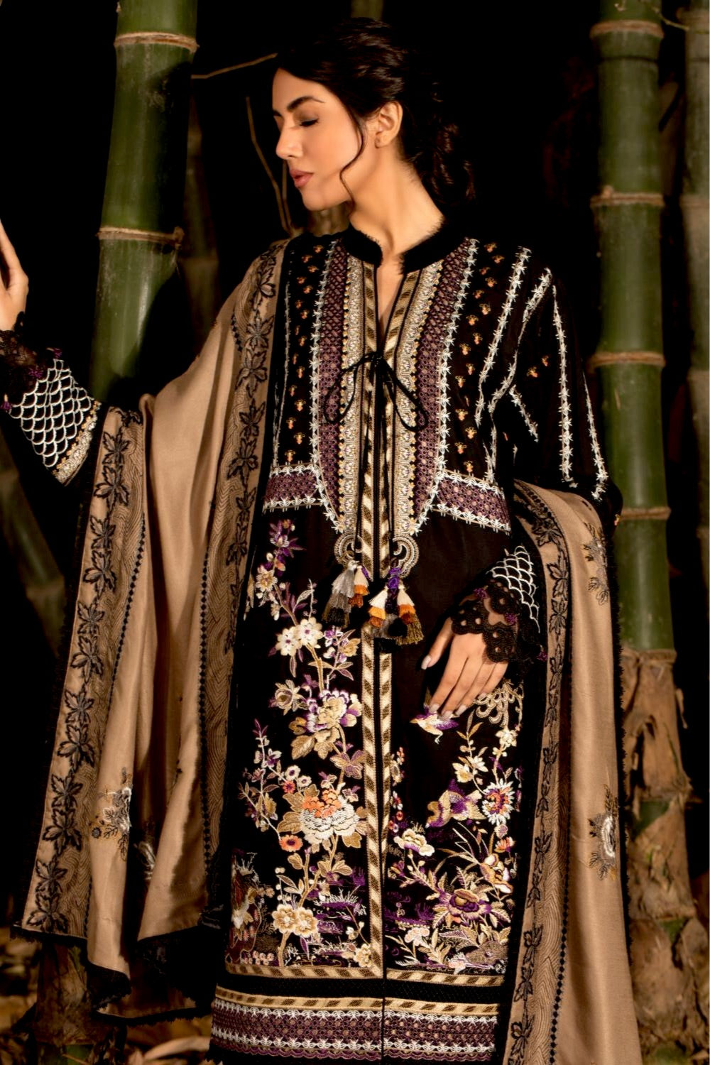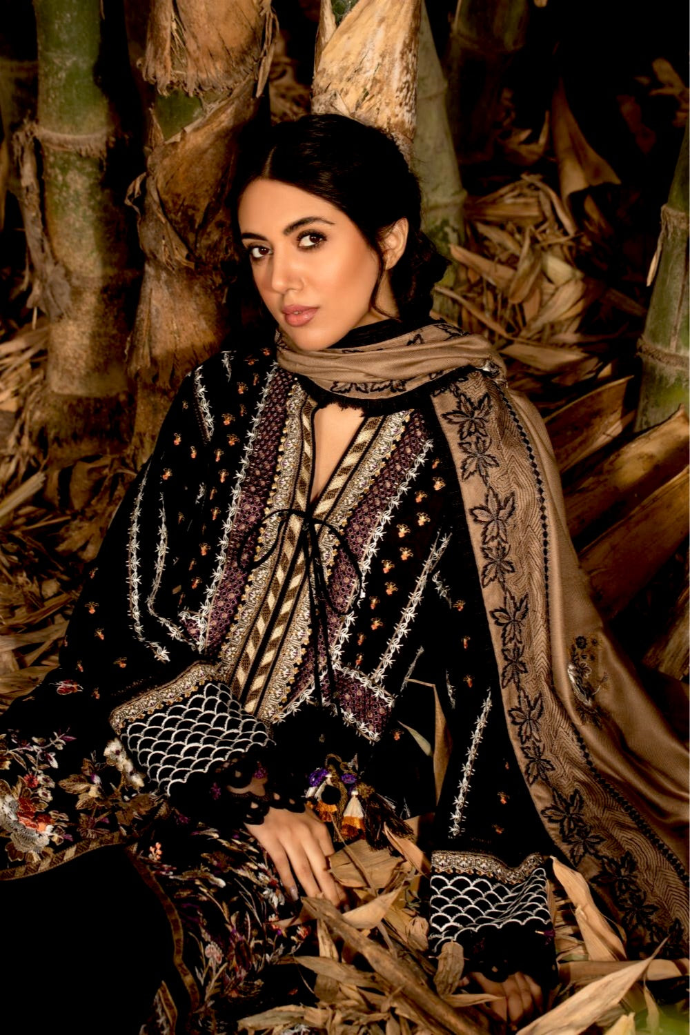 Fabric: Embroidered Front Left Right Center Panel (Heiring Bone) Embroidered Left Right-Side Panels (Heiring Bone) Embroidered Sleeves (Heiring Bone) Embroidered Daman Border (Heiring Bone) Embroidered Sleeves Border (Heiring Bone) Plain Dyed Trouser (Heiring Bone) Plain Dyed Back (Heiring Bone) Embroidered Shawl (Dobby Shawl) (Extra Laces And Hangings Are Not Included) |