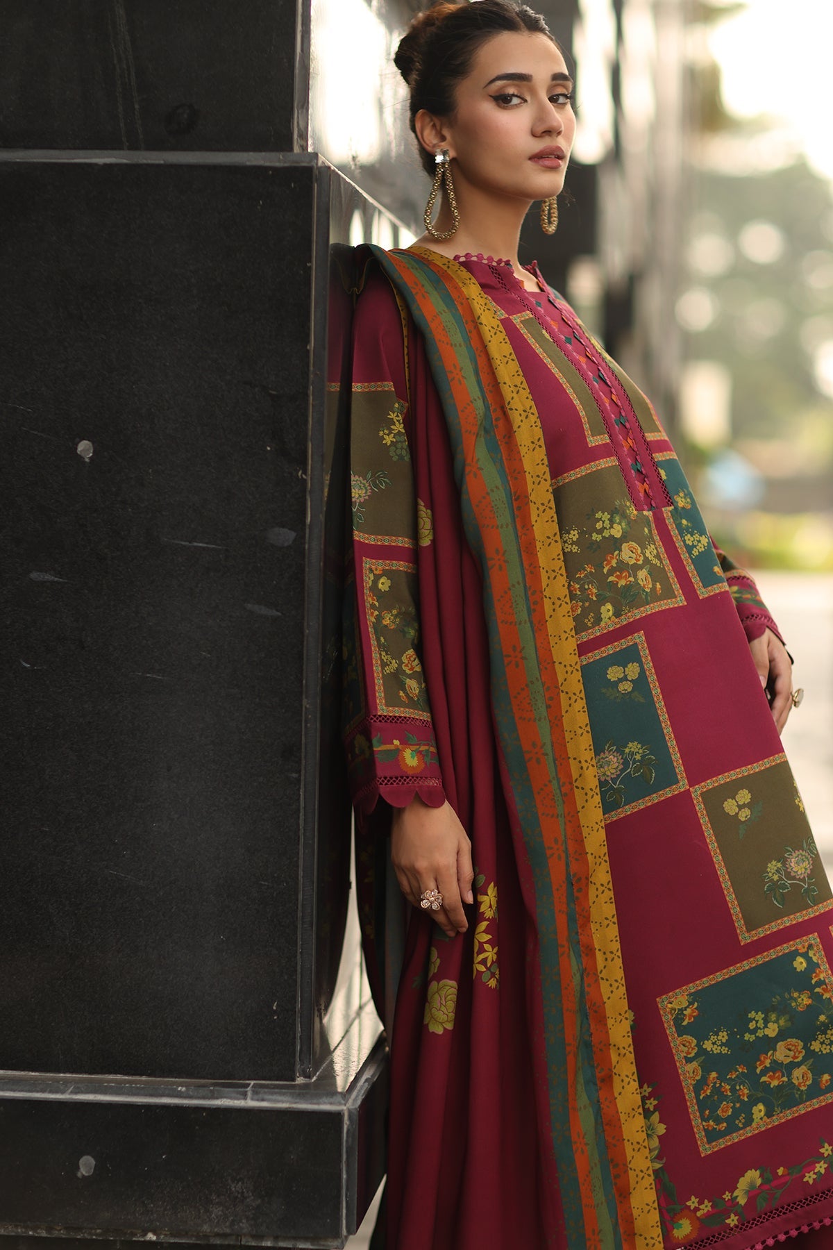 Summary: Step into the season with this elegant maroon Pakistani suit from the Charizma C-Prints Winter collection. This unstitched dress is crafted from warm Staple Khaddar, a fabric renowned for its comfort and suitability for the cooler Fall/Winter months. The kameez showcases a beautiful and intricate print, making this ethnic wear a sophisticated choice for elevated daily wear or casual social events. The deep maroon color offers a classic, versatile look, perfect for creating a stylish and cozy winter outfit. This is an ideal choice for a chic and comfortable Pakistani dress.