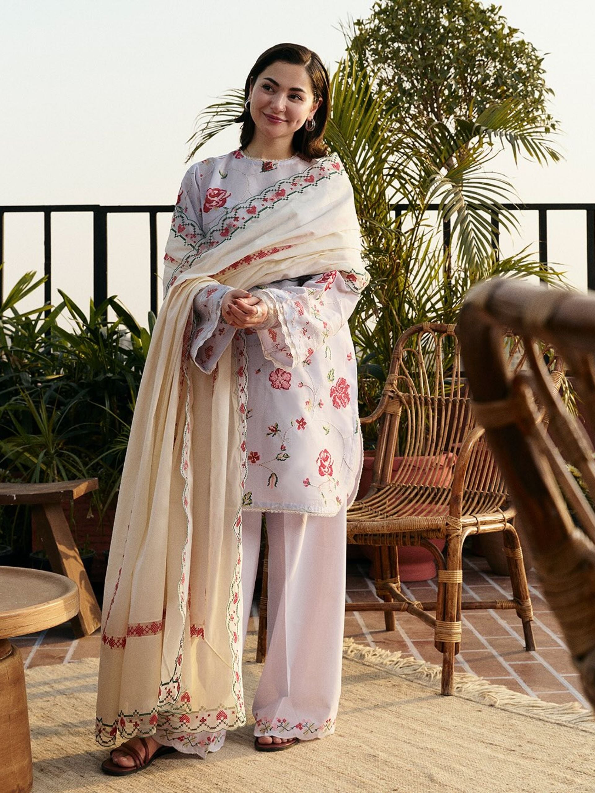 Fabric: A Lilac Summer Lawn, featuring floral embroidery and a self-jacquard dupatta, exudes a fresh, feminine charm with every detail. Embroidered Lawn Front 1 Mtr Dyed Lawn Back 1 Mtr Embroidered Lawn Sleeves 0.66 Mtr Embroidered Cambric Trouser 2 Mtrs Dyed Self Jacquard Dupatta 2.5 Mtrs Embroidered Organza Dupatta Border-1 8 Mtrs Embroidered Organza Dupatta Border-2 8 Mtrs |