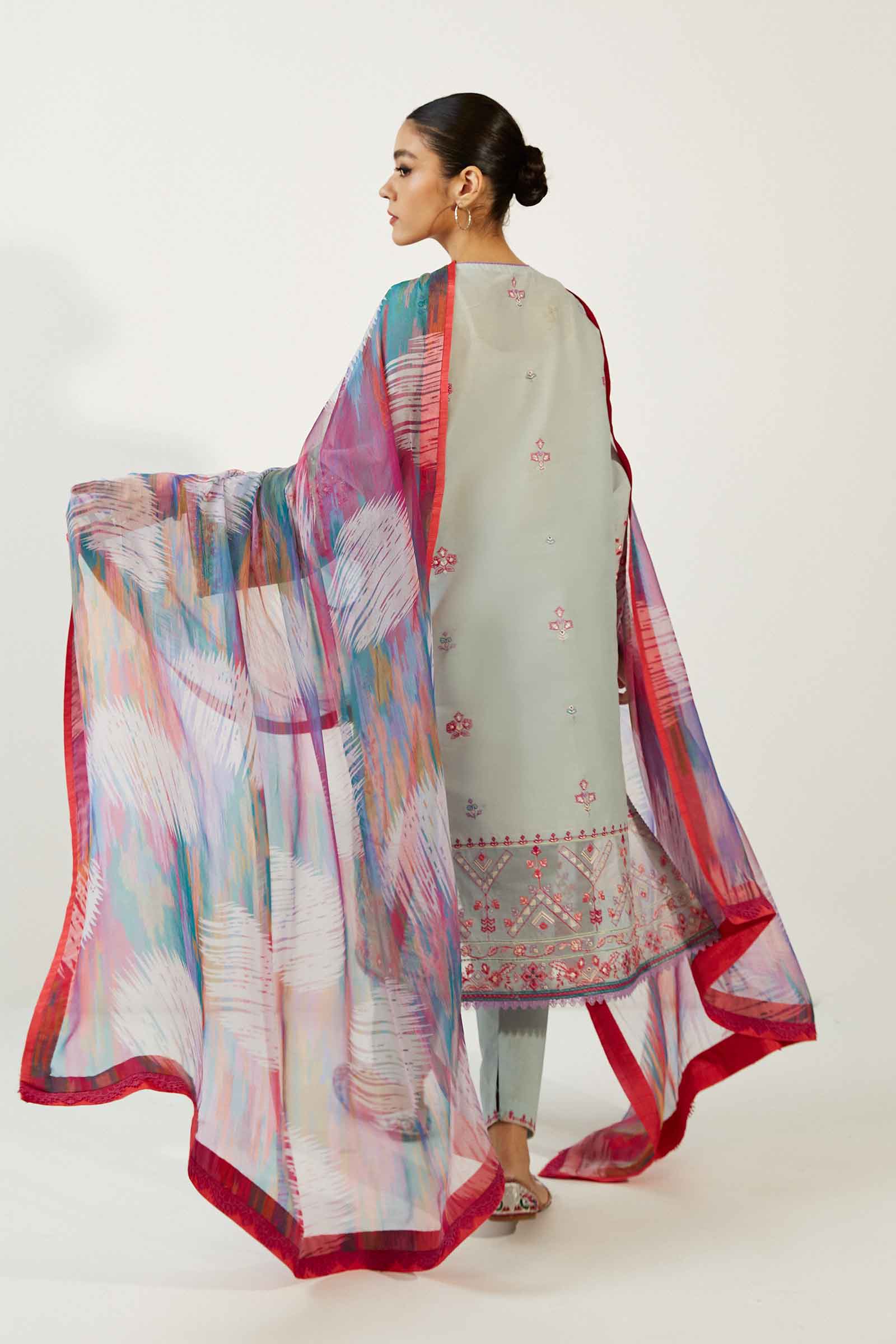 Fabric: Embroidered Front 0.7 Yard Embroidered Back 1.4 Yard Embroidered Sleeves 0.7 Yard Embroidered Neck 1 Pc Embroidered Border 5 Yard Embroidered Trouser Border 1 Yard Printed chiffon dupatta 2.6 Yard Plain cambric trouser 2.15 Yard |