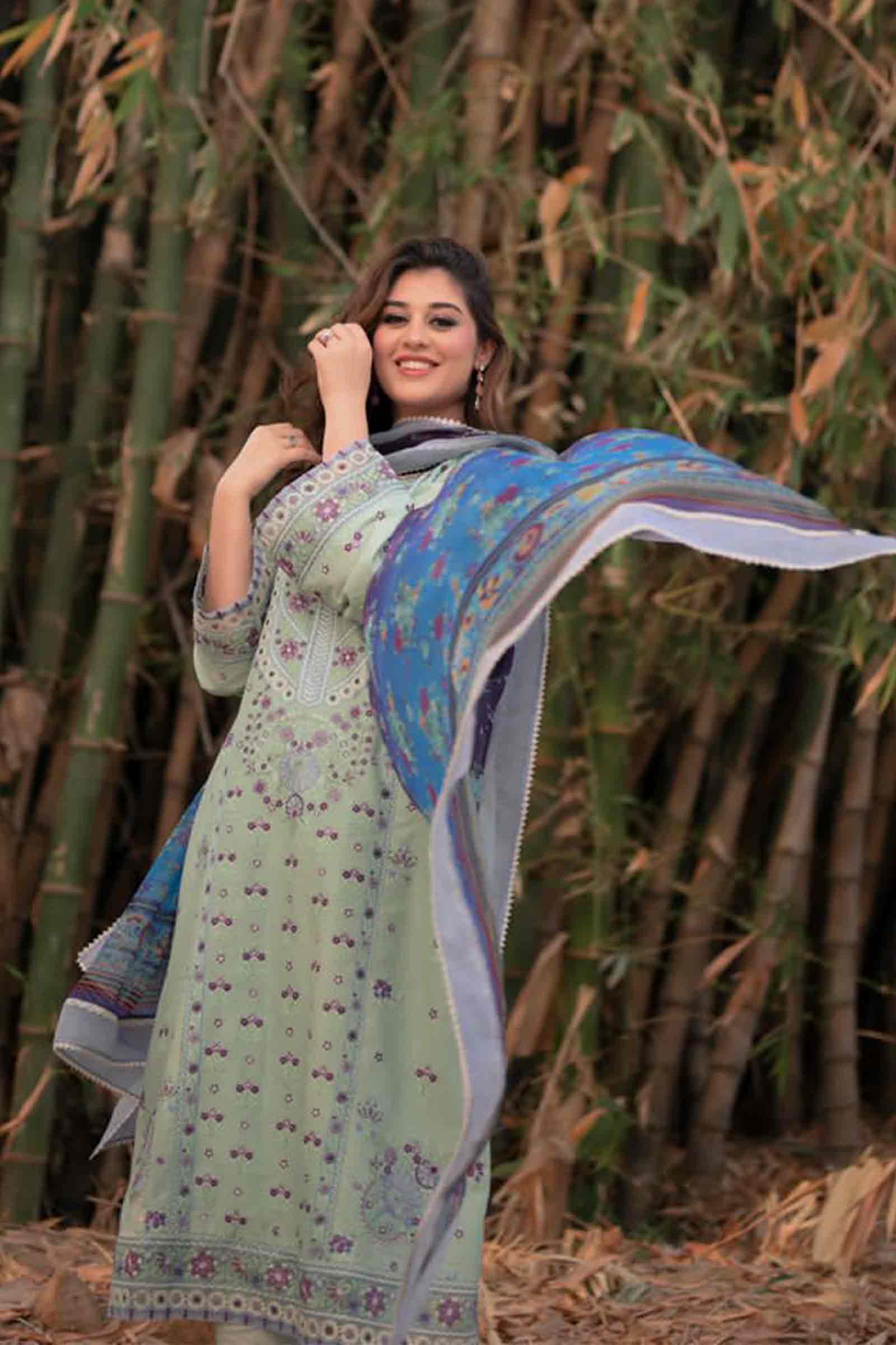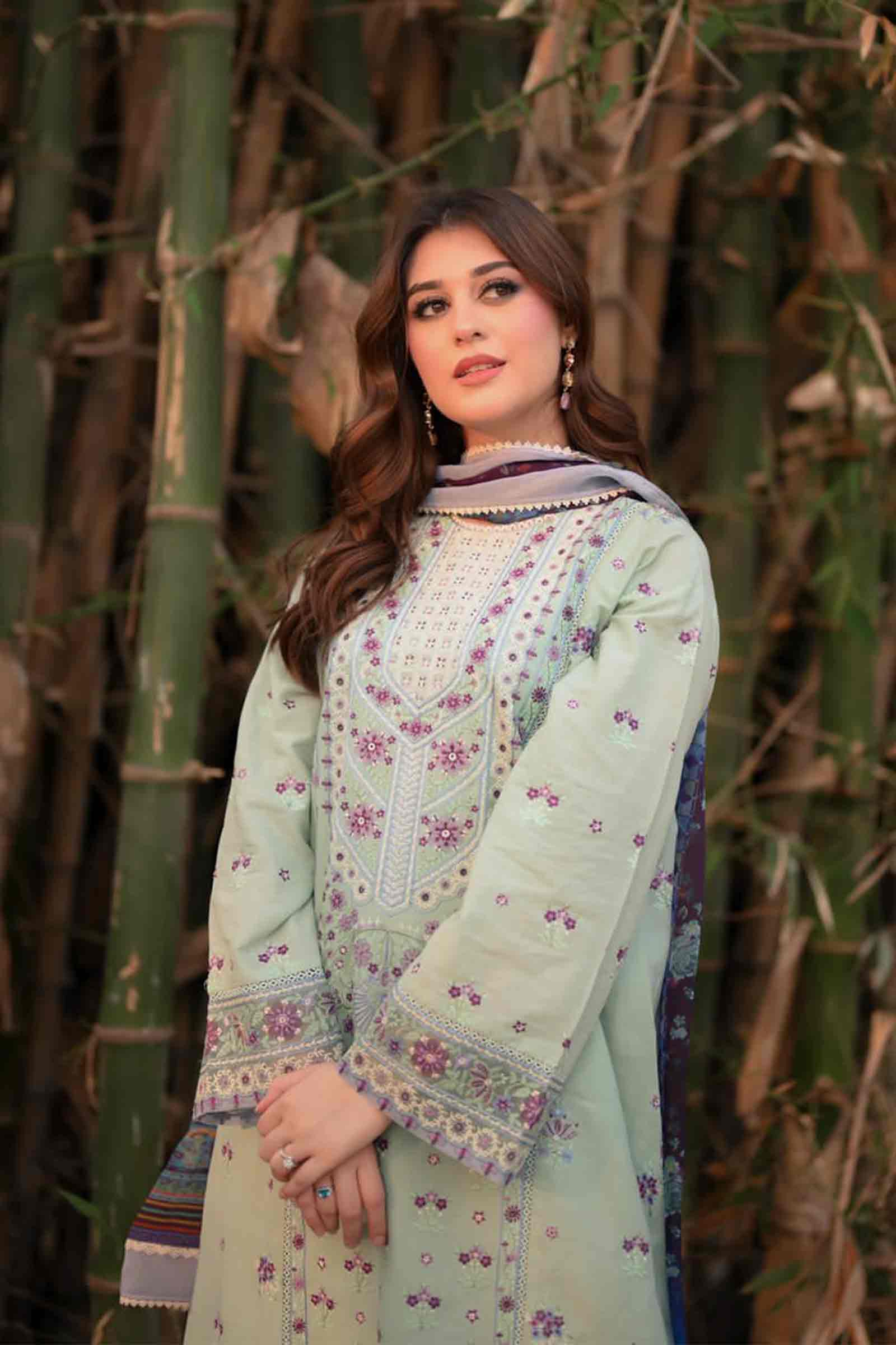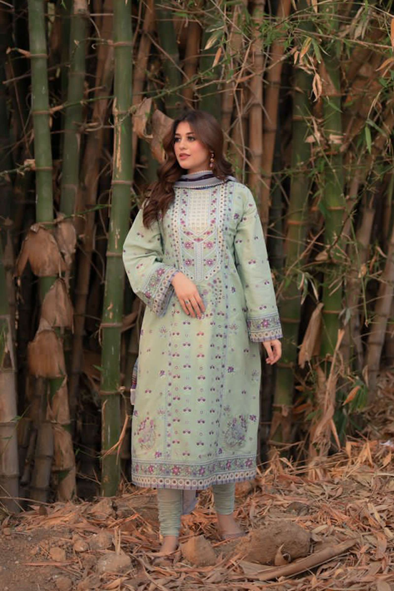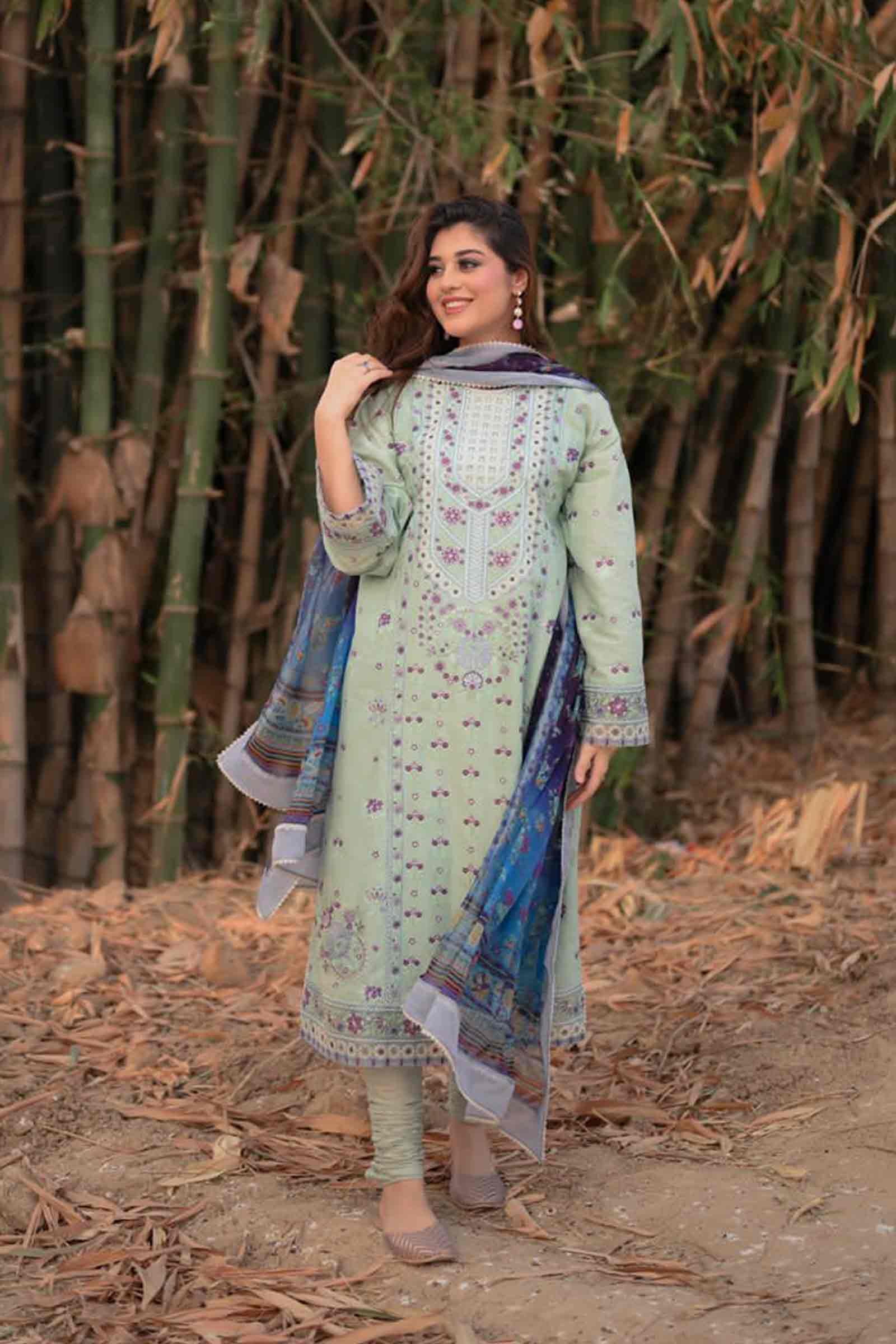 Fabric: Embroidered Front Center Panel 0.35 Yard Embroidered Back and Panel 1.6 Yards Embroidered Sleeves 0.7 Yard Embroidered Back Motifs (2) Embroidered Border 2.5 Yards Printed Chiffon Dupatta 2.6 Yards Cambric Trouser 2.15 Yards |