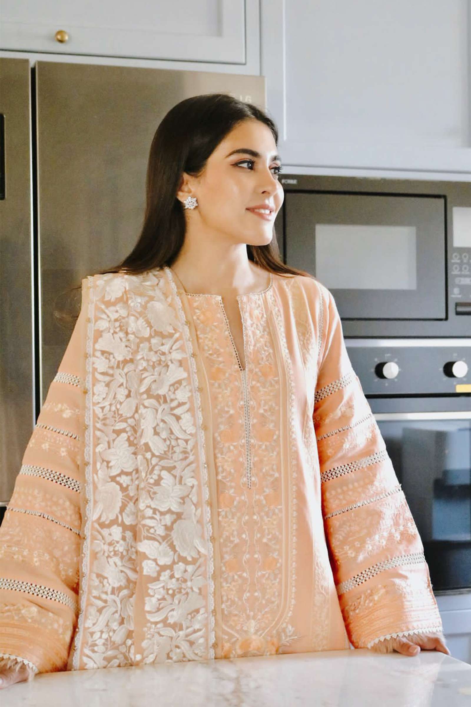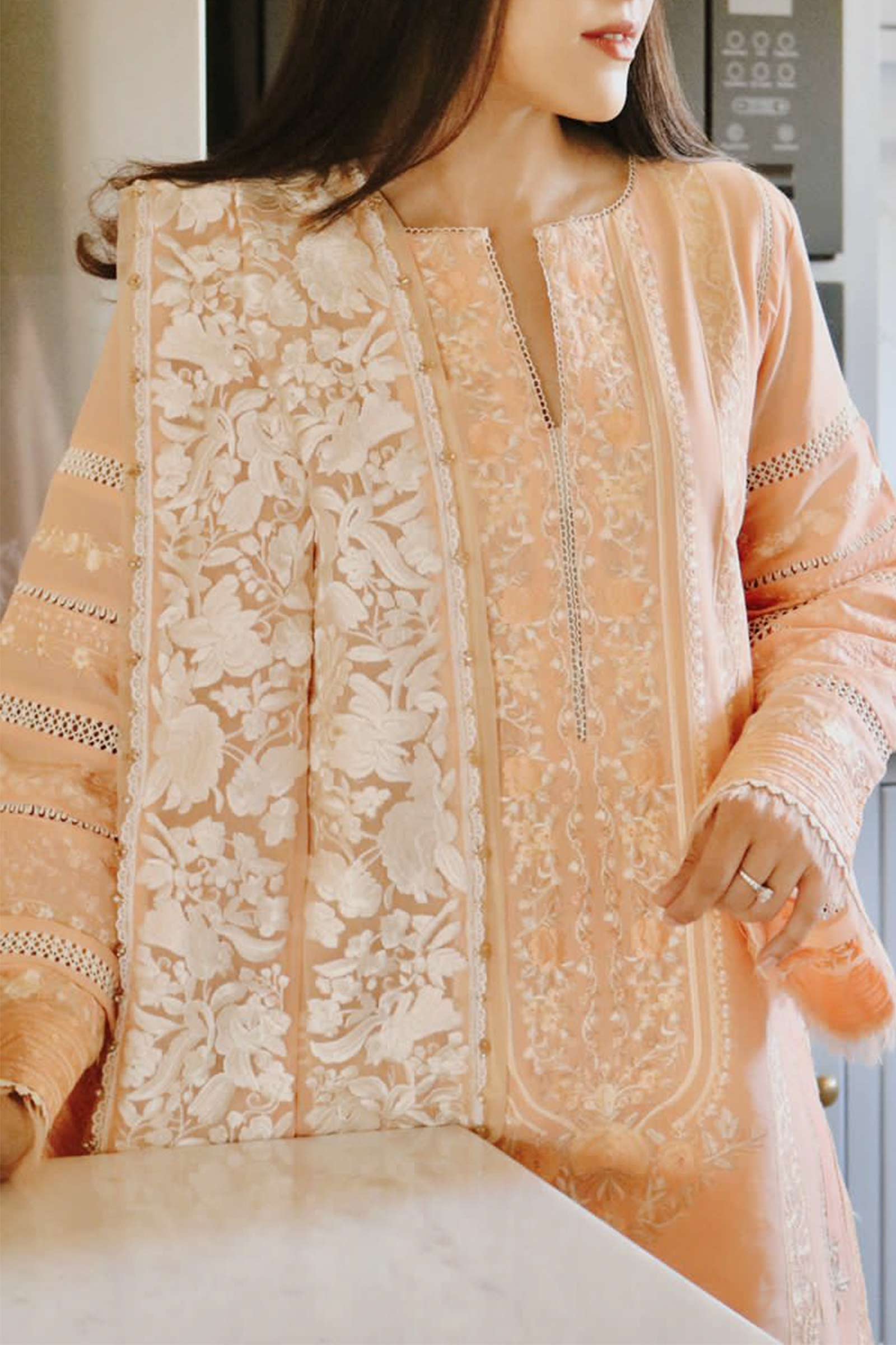 Fabric: Embroidered Front 0.7 Yard Embroidered Back & Panel 1.6 Yards Embroidered Sleeves 0.7 Yard Embroidered Motifs (4) Embroidered Border 1 Yard Embroidered Dupatta Border 2.6 Yards Embroidered Chiffon Dupatta 2.6 Yards Cambric Trouser 2.15 Yards |