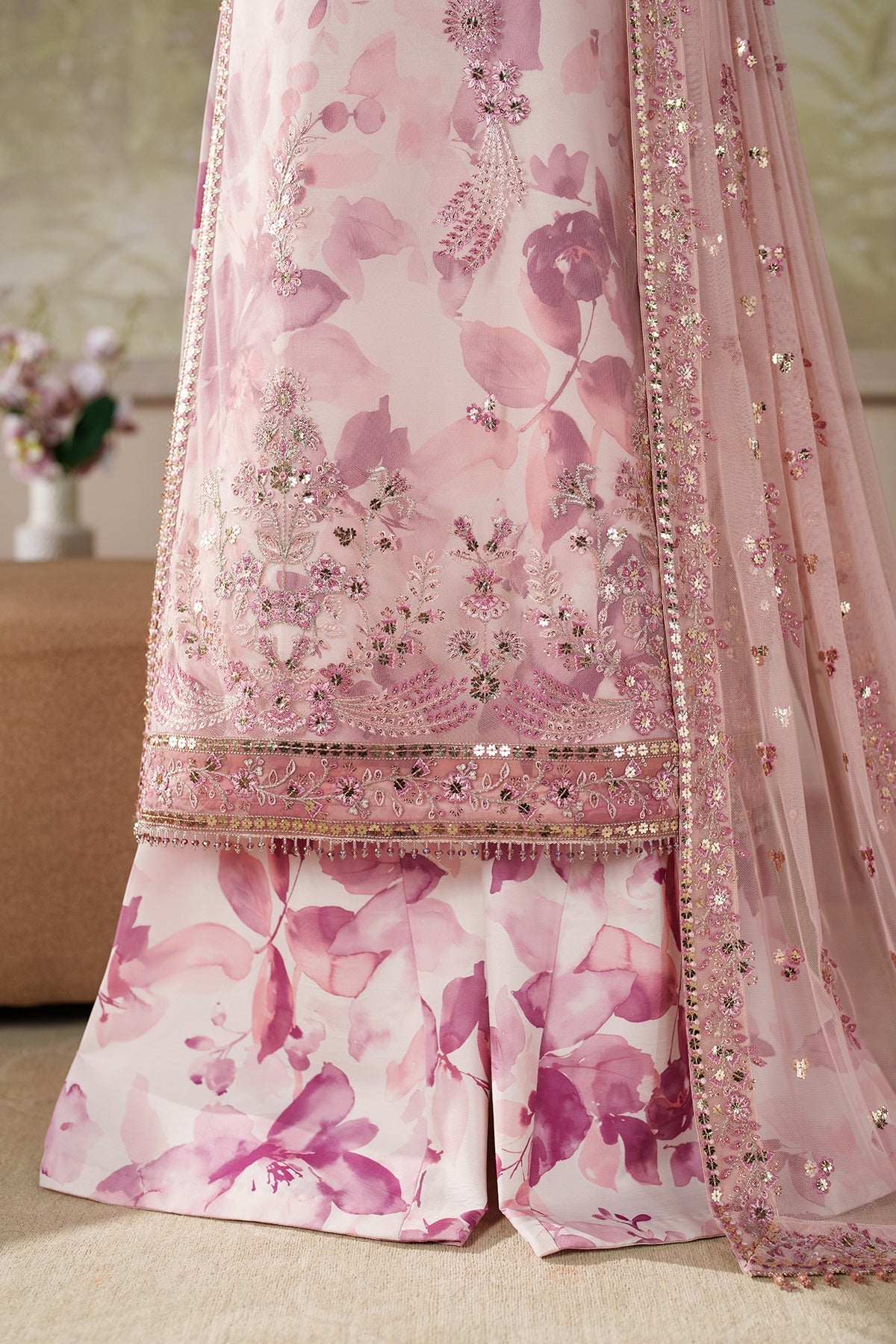 Summary: Embrace ethereal elegance with the Zarif Zaneera 'RAHMA' luxury formal suit. This exquisite Pakistani dress features a stunning pink kameez crafted from delicate, sequins-embroidered Net, offering a graceful and airy silhouette. The breathable Net fabric makes this outfit an ideal choice for Spring/Summer festivities. The shirt is adorned with intricate embroidery on the front, back, and sleeves, finished with a detailed daman lace. Its soft pink shade exudes sophistication, perfect for formal wear, party wear, or as a distinguished wedding guest outfit. This unstitched ensemble is a masterpiece of ethnic wear, designed to make you stand out at any celebration.