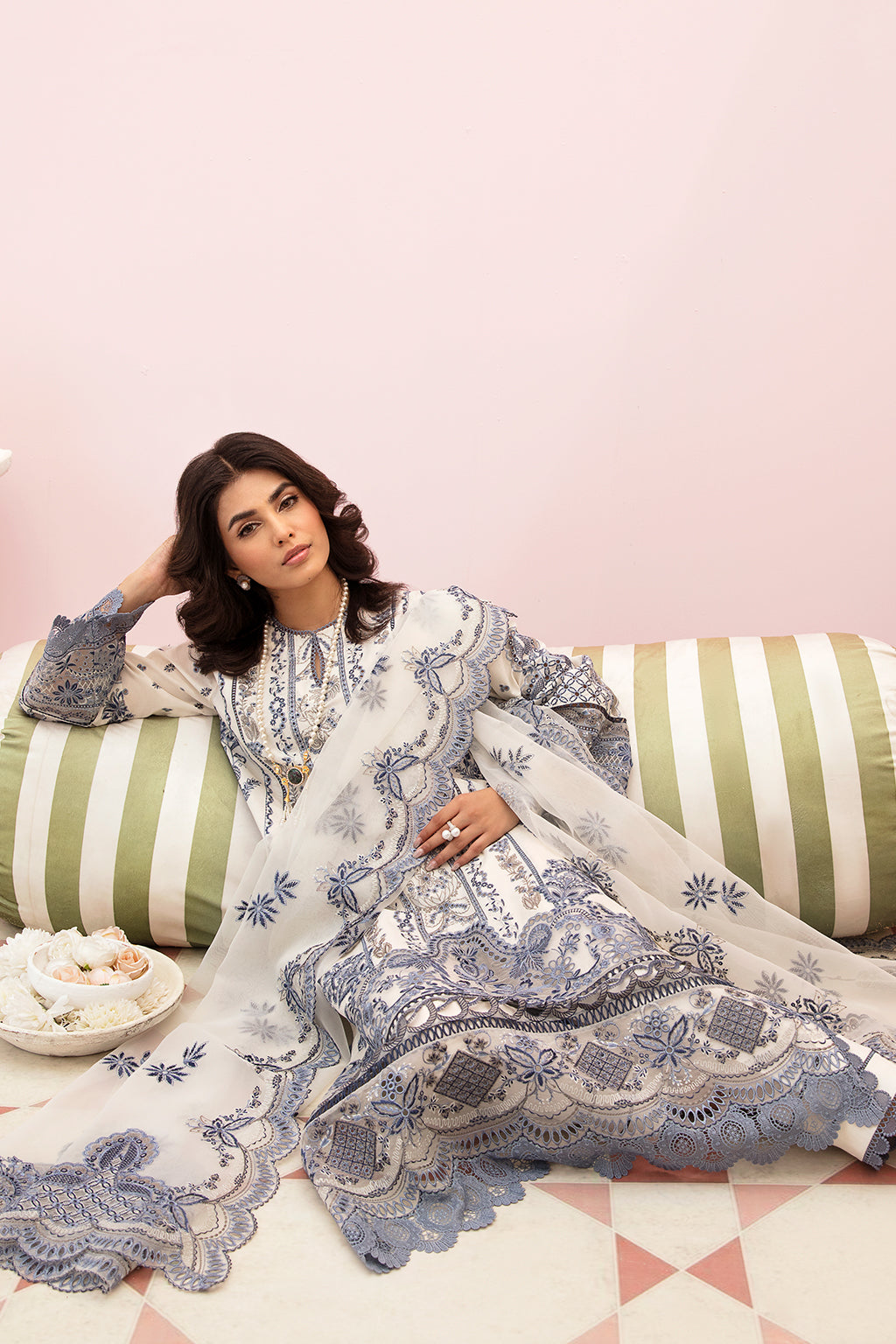 Fabric: LAWN EMBROIDERED FRONT CENTER PANEL (1PC) LAWN EMBROIDERED FRONT RIGHT PANEL (1PC) LAWN EMBROIDERED FRONT LEFT PANEL (1PC) LAWN EMBROIDERED BACK (0.98M) LAWN EMBROIDERED SLEEVES (0.66M) ORGANZA EMBROIDERED SLEEVES BORDER (1M) ORGANZA EMBROIDERED FRONT BORDER (1PC) ORGANZA EMBROIDERED FRONT+BACK BORDER A (2M) ORGANZA EMBROIDERED FRONT+BACK BORDER B (2M) ORGANZA EMBROIDERED DUPATTA (2.62M) ORGANZA EMBROIDERED DUPATTA PALLU BORDER (2.28M) ORGANZA EMBROIDERED DUPATTA PALLU (LEFT+RIGHT) (2PCS) COTTON DYED TROUSER (2.28M) |