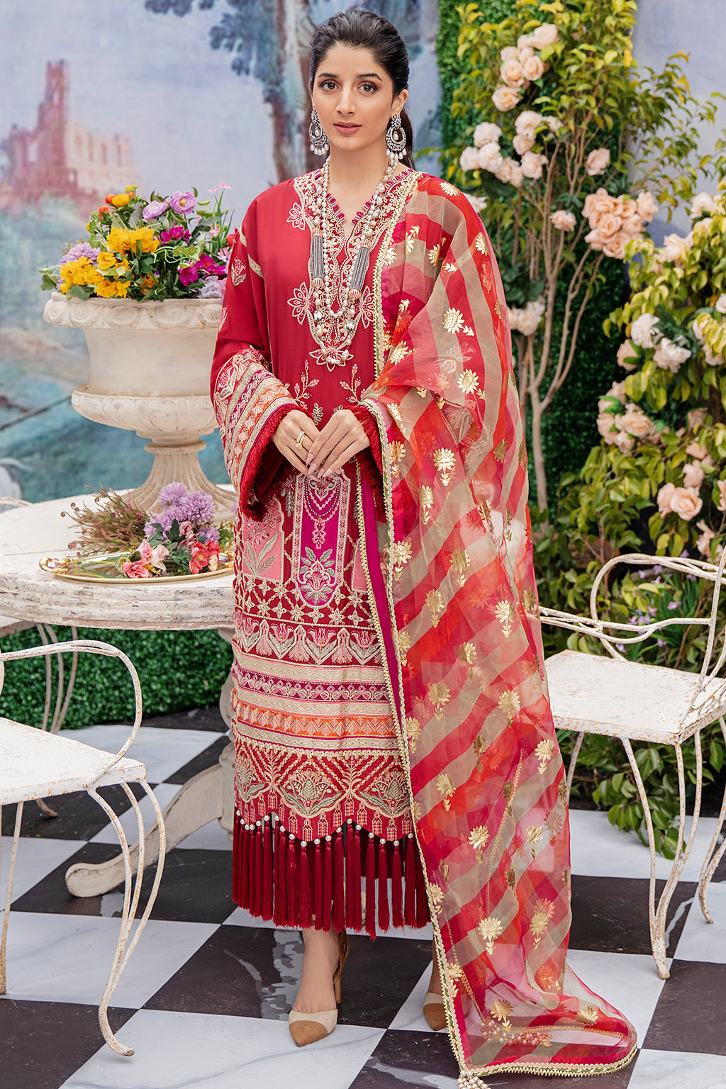 Fabric: Lawn Embroidered Center Panel ( 13 Inches ) Lawn Embroidered Kali L + R ( 13 Inches ) Lawn Plain Back ( 1 Meter ) Lawn Embroidered Sleeve ( 0.66 Meter ) Raw Silk Embroidered Front + Back + Sleeve Border A ( 3 Meter ) Raw Silk Embroidered Front + Back + Sleeve Border B ( 3 Meter ) Raw Silk Embroidered Front + Back + Border ( 2 Meter ) Raw Silk Embroidered Sleeve Border ( 1 Meter ) Raw Silk File Print Dupatta ( 3 Yards ) Cotton Plain Trouser ( 2.5 Yards ) |