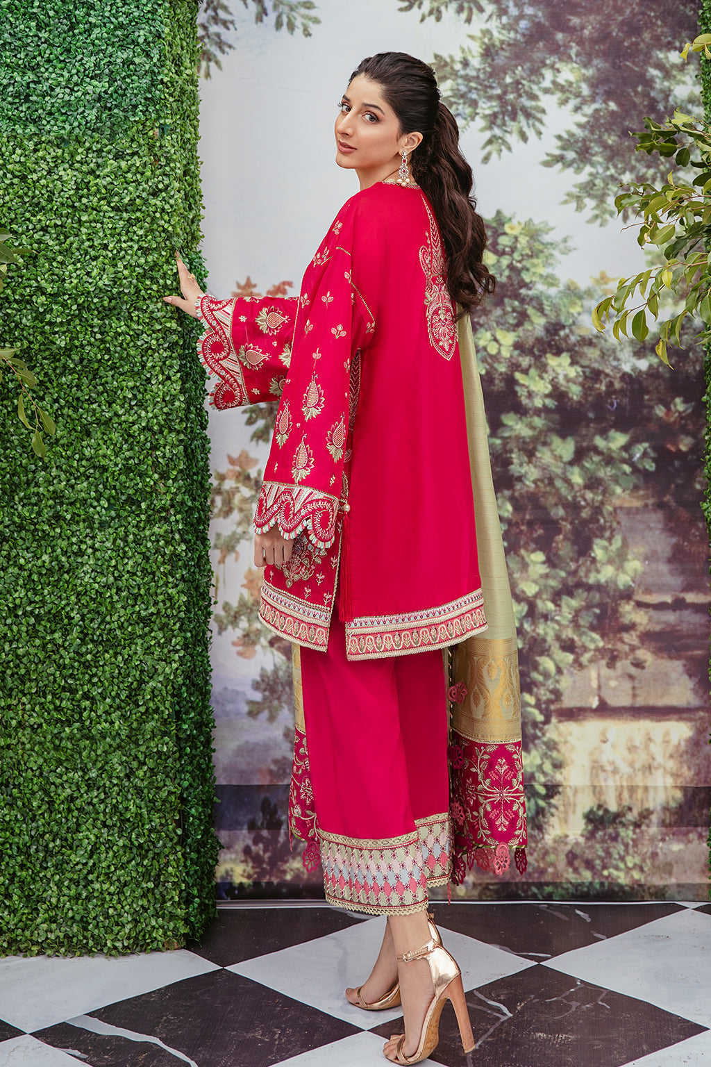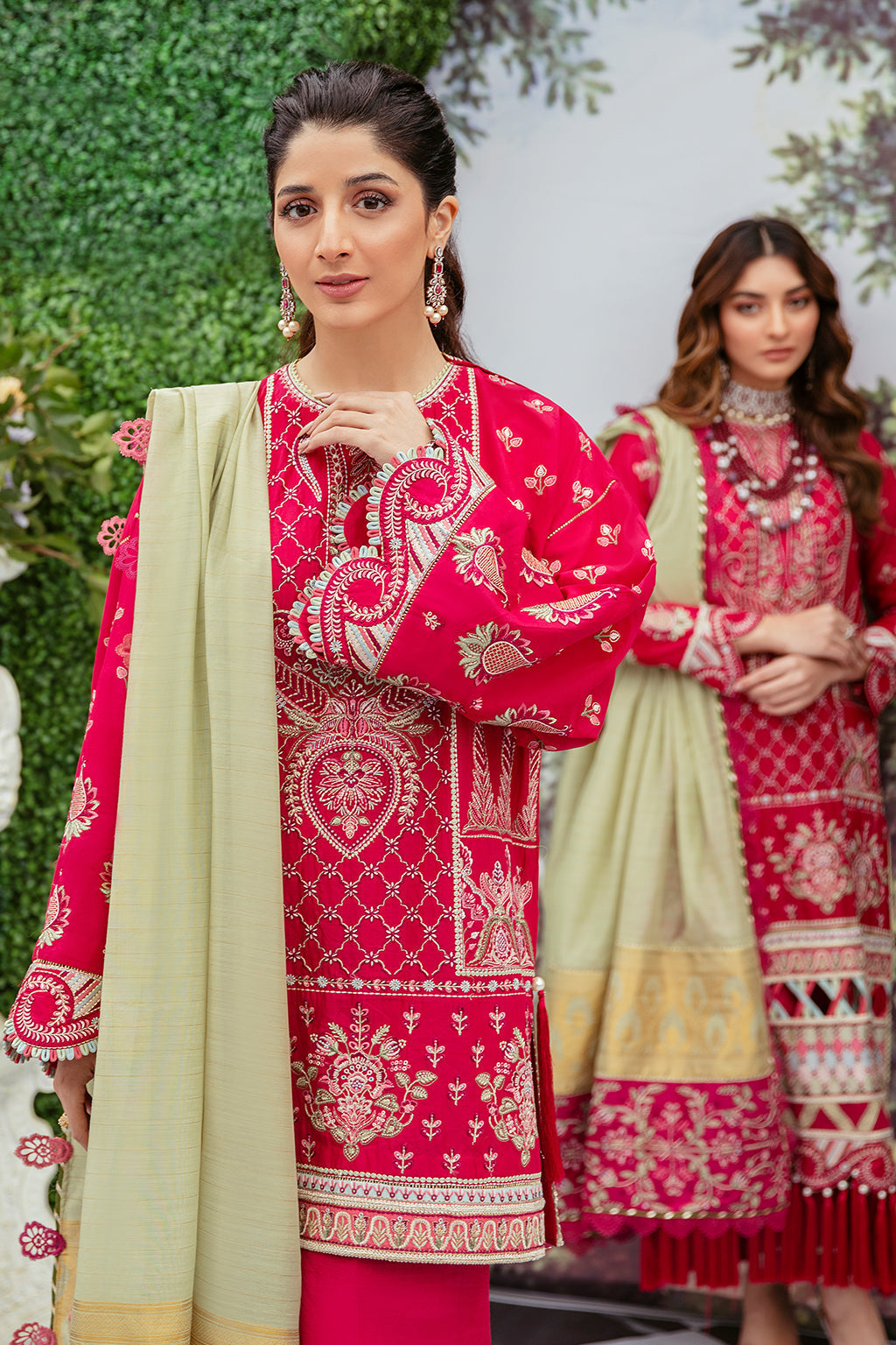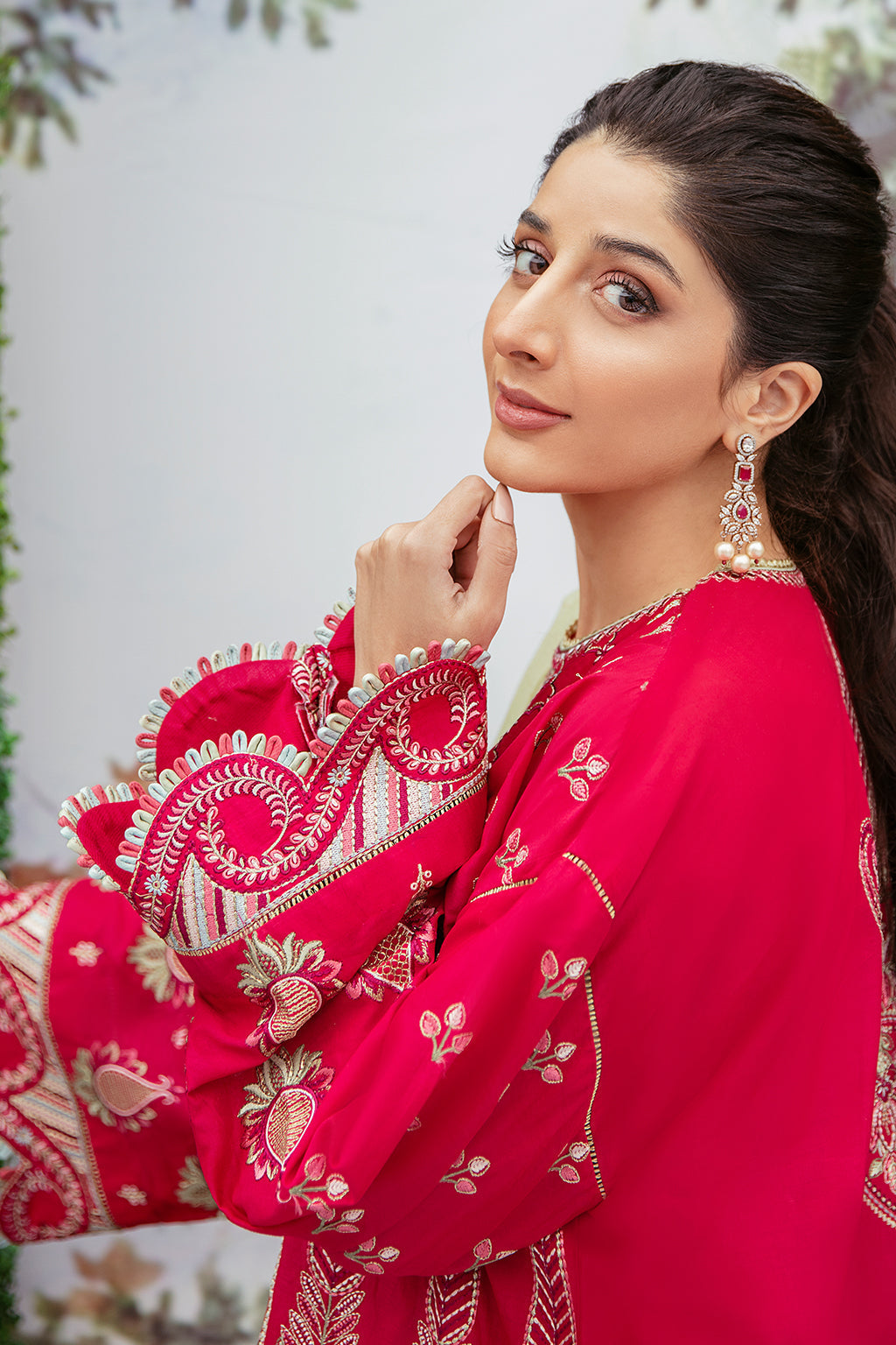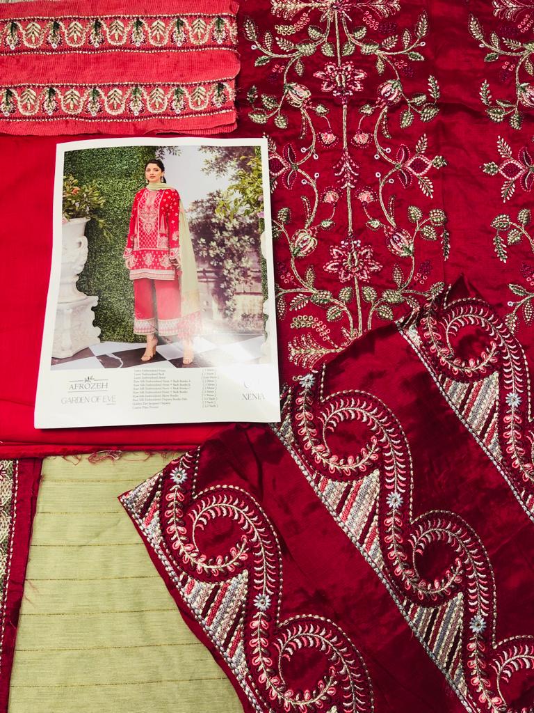 Fabric: Lawn Embroidered Front ( 1 Meter ) Lawn Embroidered Back ( 1 Meter ) Lawn Embroidered Sleeves ( 0.66 Meter ) Raw Silk Embroidered Front + Back Border A ( 2 Meter ) Raw Silk Embroidered Front + Back Border B ( 2 Meter ) Raw Silk Embroidered Front + Back Border C ( 2 Meter ) Raw Silk Embroidered Front + Back Border ( 2 Meter ) Raw Silk Embroidered Sleeve Border ( 1 Meter ) Raw Silk Embroidered Dupatta Border Pallu ( 2.5 Yards ) GOLDEN ZARI JACQUARD DUPATA ( 3 Yards ) Cotton Plain Trouser ( 2.5 Yards ) |