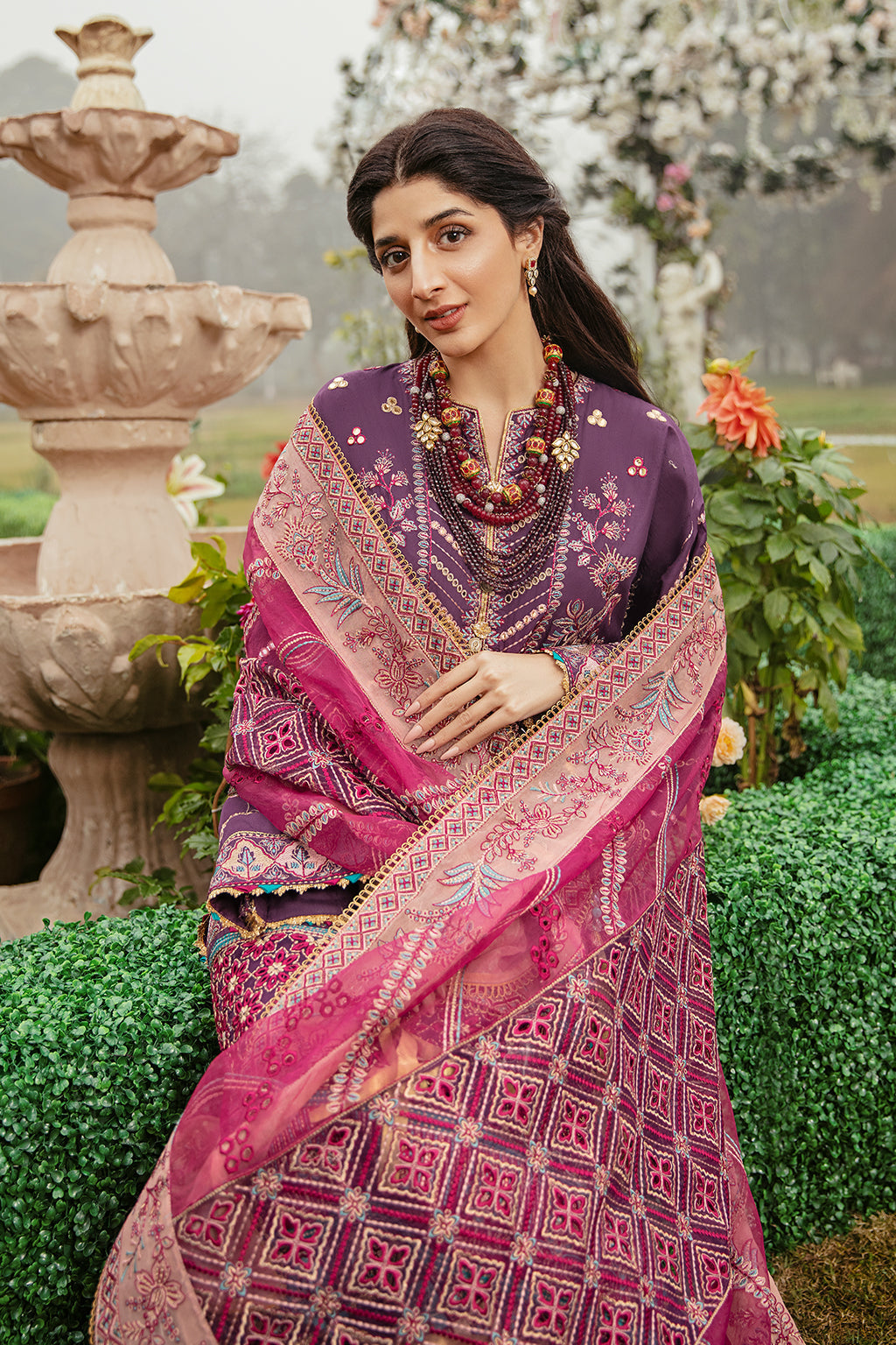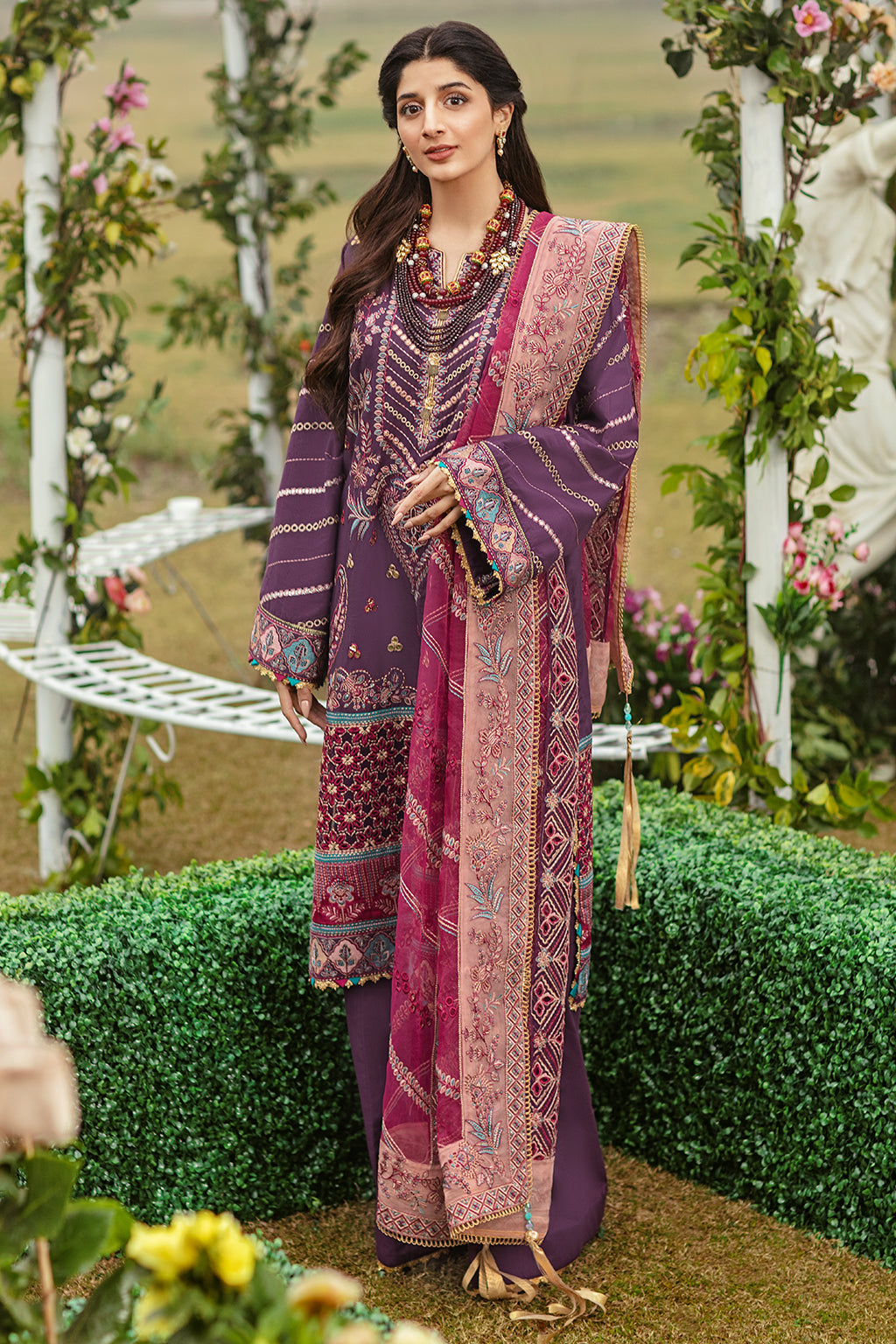 Fabric: Lawn Embroidered Front ( 1 Meter ) Lawn Plain Back ( 1 Meter ) Lawn Embroidered Sleeve ( 0.66 Meter ) Organza Embroidered Front + Back Border A ( 2 Meter ) Raw Silk Embroidered Front + Back Border B ( 2 Meter ) Raw Silk Embroidered Front + Back + Sleeve Border ( 3 Meter ) Organza Dupatta Border ( 8 Yards ) Organza Embroidered Dupatta A ( 3 Yards ) Organza Embroidered Dupatta B ( 3 Yards ) Cotton Trouser ( 2.5 Yards ) |