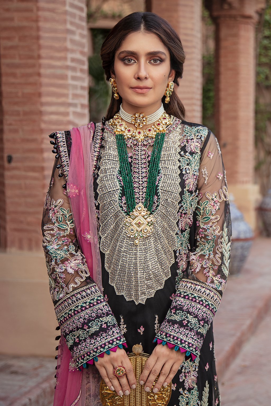 Fabric: EMBROIDERED POLY NET FRONT 0.75 YARD EMBROIDERED POLY NET BACK 1.5 YARD EMBROIDERED POLYNET SLEEVES 0.75 YARD EMBROIDERED RAW SILK FRONT+BACK BDR 1 2 YARD EMBROIDERED ORGANZA FRONT+BACK BDR 2 2 YARD EMBROIDERED RAW SILK SLEEVES BDR 1 YARD EMBROIDERED POLY NET DUPATTA 2.5 YARD EMBROIDERED ORGANZA DUPATA+SLV BDR 9 YARD EMBROIDERED ORGANZA NECK LINE 2 PC EMBROIDERED ORGANZA TROUSER BDR 1 1.25 YARD EMBROIDERED ORGANZA TROUSER BDR 2 1.25 YARD EMBROIDERED ORGANZA BACK MOTIF 1 PC RAW SILK TROUSER 2.5 YARD |
