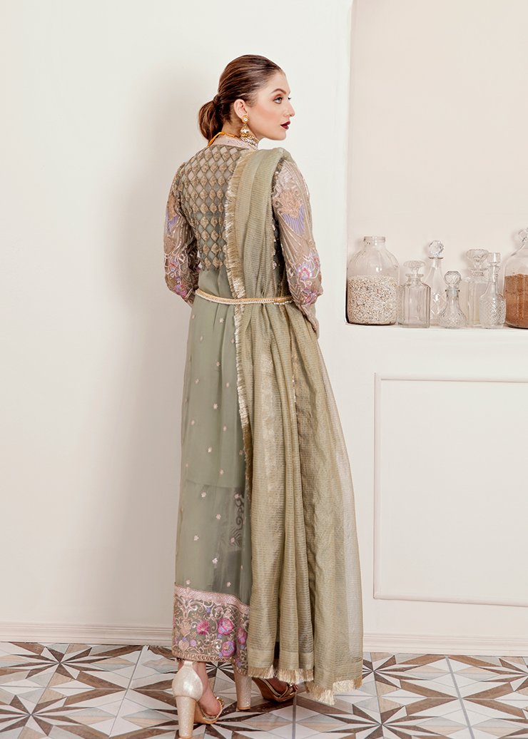 Fabric: Embroidered and hand embellished Shirt Front 1 Yard on Chiffon Embroidered Shirt Back 1.25 Yard on Chiffon Embroidered Sleeves 0.75 yard on Chiffon Embroidered side panels right left 0.35 yard on chiffon Embroidered Front and back Patch 2 yard on organza Embroidered front length patch 2.5 yard on organza Duppata 2.5 yard Trouser 2.5-yard rawsilk |