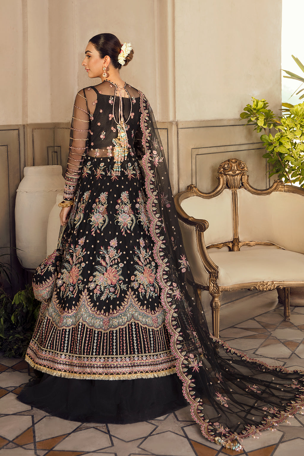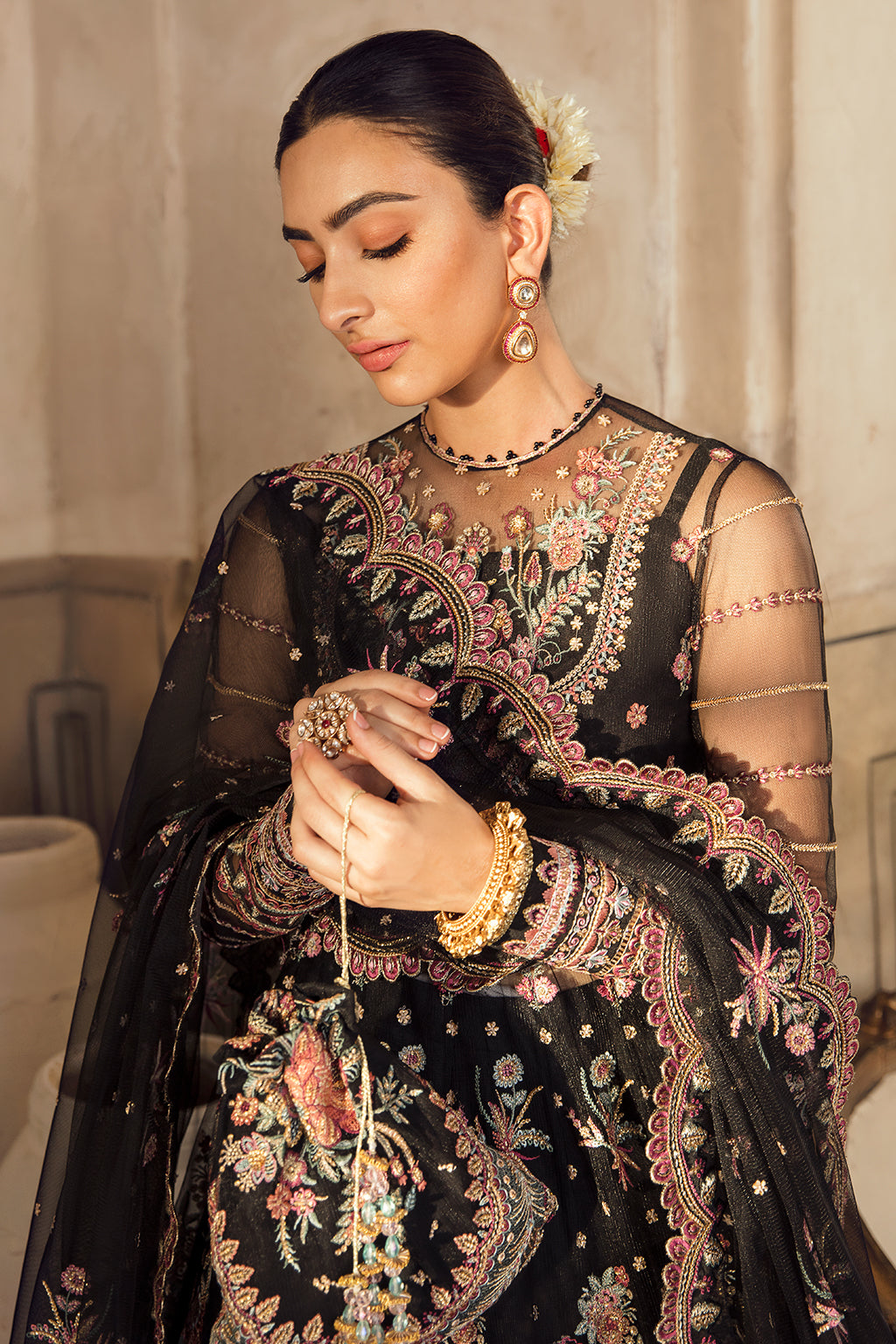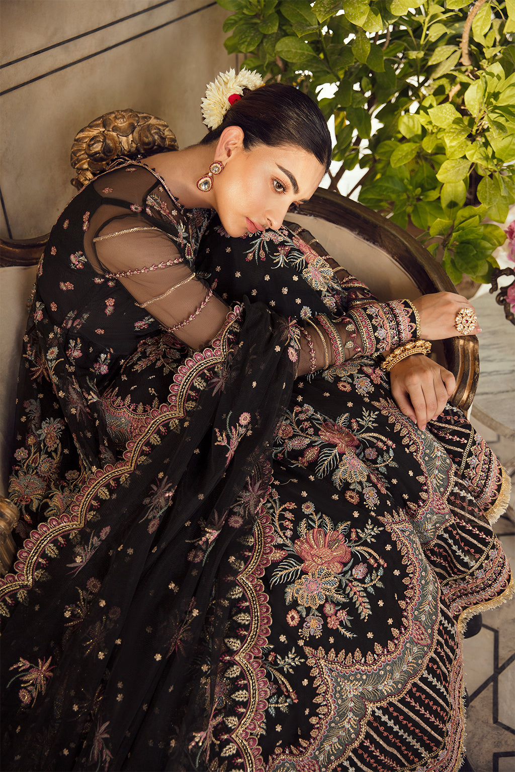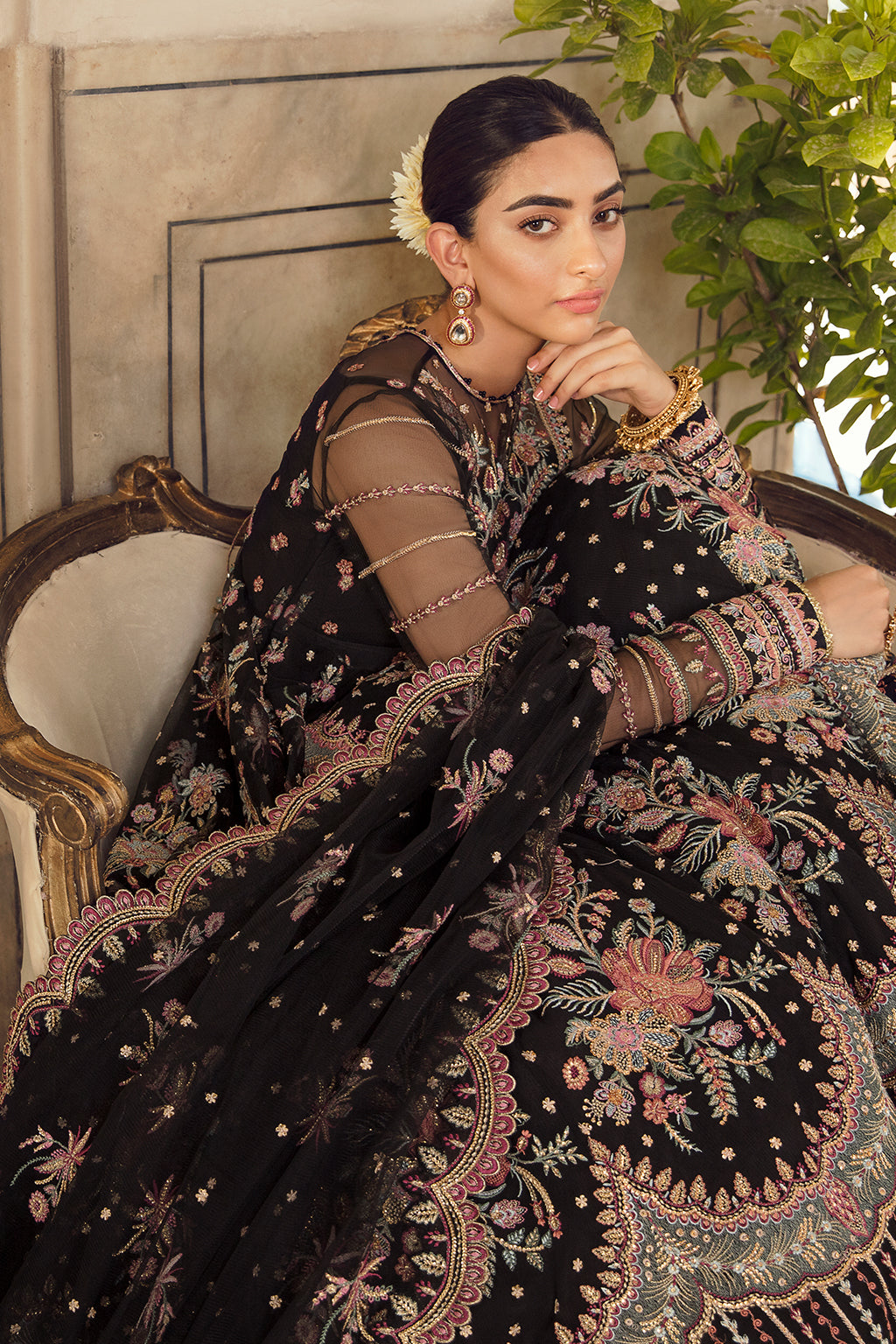 Fabric: ‘Kezia’ is a classic floor-length flared net Pishwas with a canvas of delicate tracery and English floral trellises that are tastefully highlighted with fine tilla work and multi colored silk thread embroideries. A heavy net dupatta boasts of a lushly embroidered and scalloped border. A plain raw silk bottom balances this outfit for any wedding festivity. NET EMBROIDERED FRONT+ BACK BODY ( 0.66 Meters ) NET EMBROIDERED SLEEVE ( 0.66 Meters ) NET EMBROIDERED KALI ( 14 PC ) NET EMBROIDERED DUPATTA ( 3 Yards ) ORGANZA EMBROIDERED FRONT+ BACK BORDER ( 5 Meters ) ORGANZA EMBROIDERED SLEEVE BORDER ( 1 Meters ) RAW SILK PLAIN TROUSER ( 2.5 Yards ) |