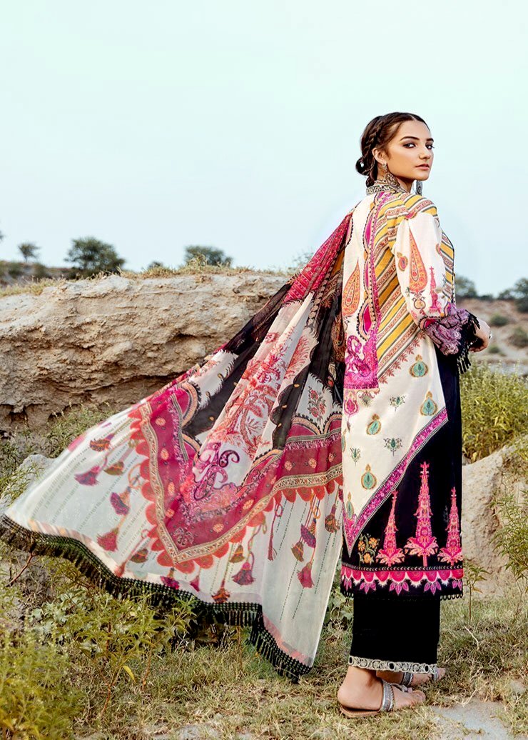 Fabric: Shirt: 3 meter digital printed lawn Dupatta: 2.5 meter digital print on Chiffon Trouser: 2.5 meter Lawn Front Patch: 0.75 meter embroidery on organza Trouser patch: 1.25 meter embroidery on organza Neck Patch: 1.25 meter embroidery on Organza |