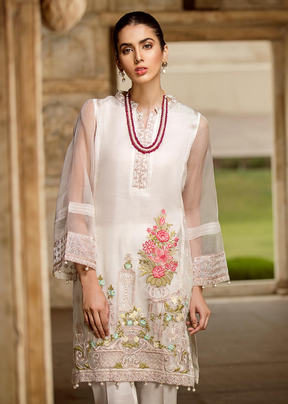 Fabric: Pure Organza Shirt (Can be stitched upto 44" Length) Crepe Silk Trouser - 2.5 Meter Cotton Silk Inner |
