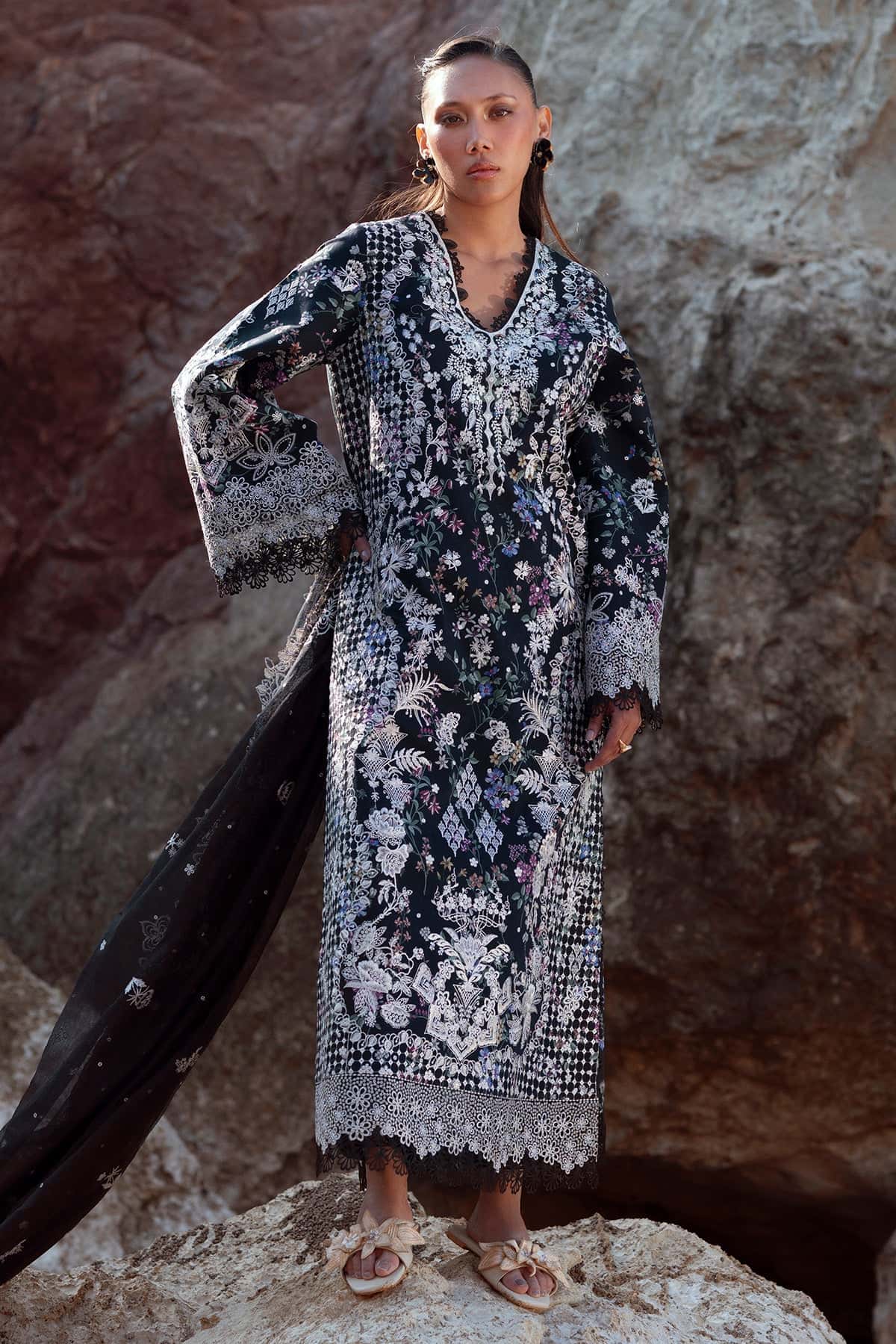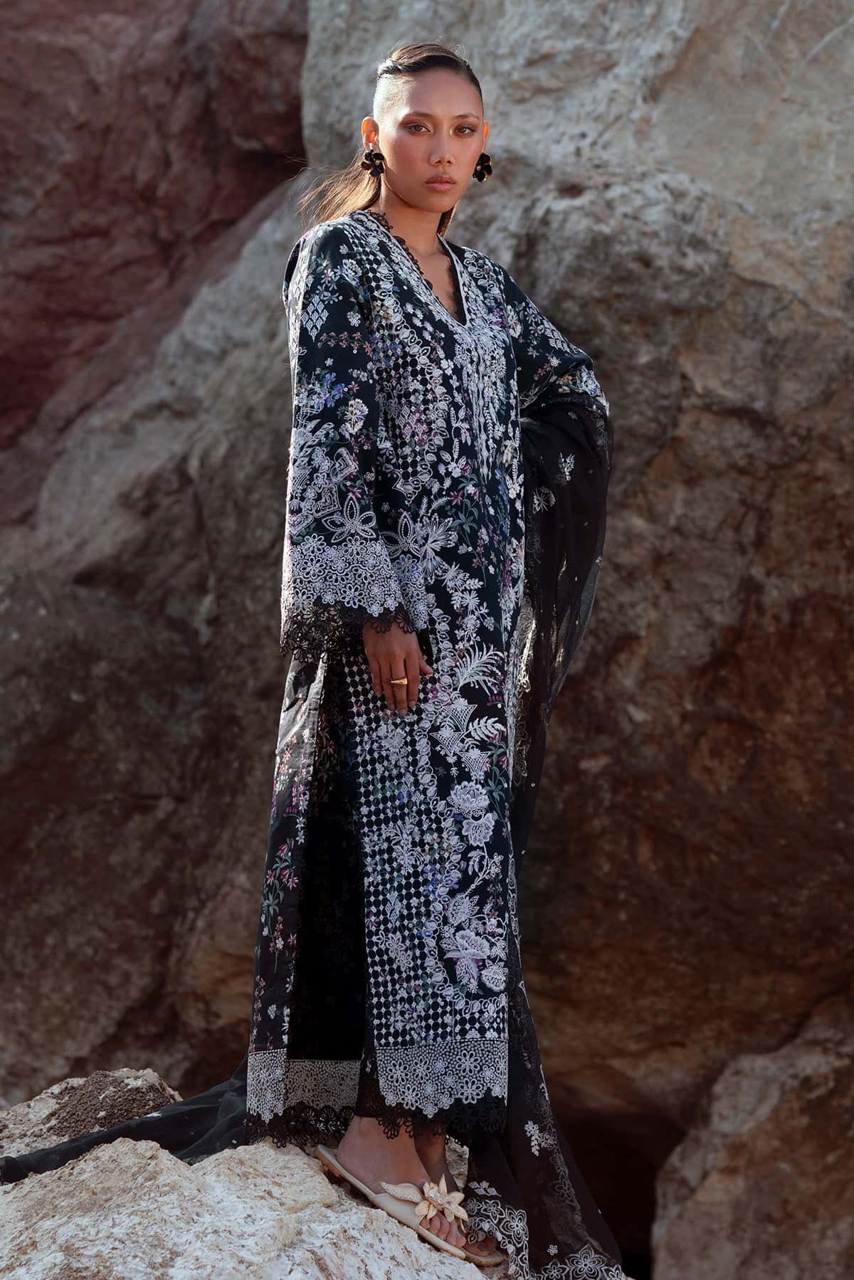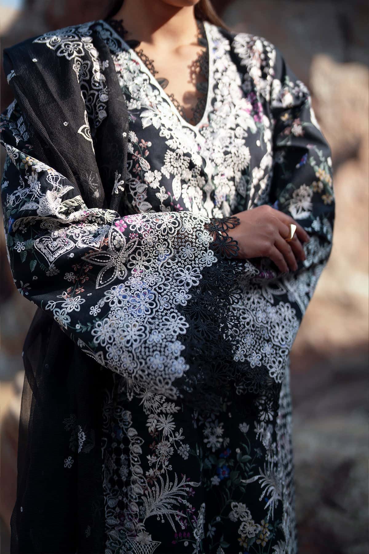Summary: The Afrozeh Summer Together Lawn Saffron Jasper presents a captivating black Pakistani lawn suit perfect for adding a touch of effortless elegance to your everyday wardrobe. This unstitched three-piece ensemble features a digitally printed lawn shirt, a cotton net dupatta, and cotton trousers. The main attraction, the black lawn shirt, showcases intricate digital prints and delicate embroidery. While the provided images display exquisite lace borders and embellishments, the true essence of the shirt lies in its solid black base, offering endless styling possibilities. Paired with a cotton net dupatta with embroidered pallu and comfortable cotton trousers, this suit allows for versatile styling. Crafted from high-quality lawn, the shirt promises breathability and comfort, making it ideal for warmer days. Whether you're stepping out for a casual gathering or simply enjoying a relaxed day at home, this Afrozeh creation offers both style and comfort. This unstitched suit empowers you to tailor it to your unique preferences, ensuring a perfect fit. Experience the beauty and versatility of Pakistani fashion with the Afrozeh Summer Together Lawn Saffron Jasper.