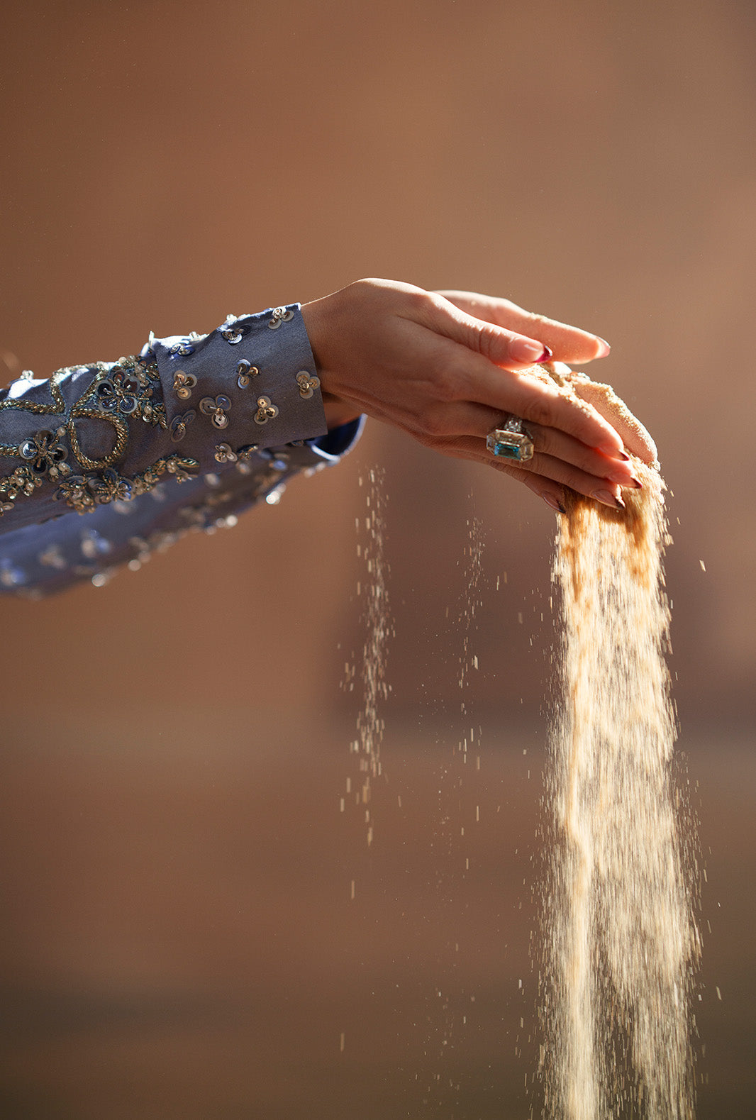 Fabric: Work Technique: Printed & Embroidered Best worn In: All Season Package Includes: 3PC Shirt, Dupatta & Trouser Fabric: Silk Description: Crafted with a polished Sheesha silk shirt for a smooth and elegant silhouette. The Korean raw-silk trousers enhance the look with tailored finesse. Paired with a silk embroidered dupatta, adding softness and refined detailing. Fabric Details Shirt: Sheesha Silk Trouser: Korean Rawsilk Trousers Dupatta: Silk Embroidered Dupatta Note: All the measurements given in the size chart are of finished apparel measurements. It may be slightly vary to half inch less or more. Tasselings and laces may vary according to the availability of stock in the market. |